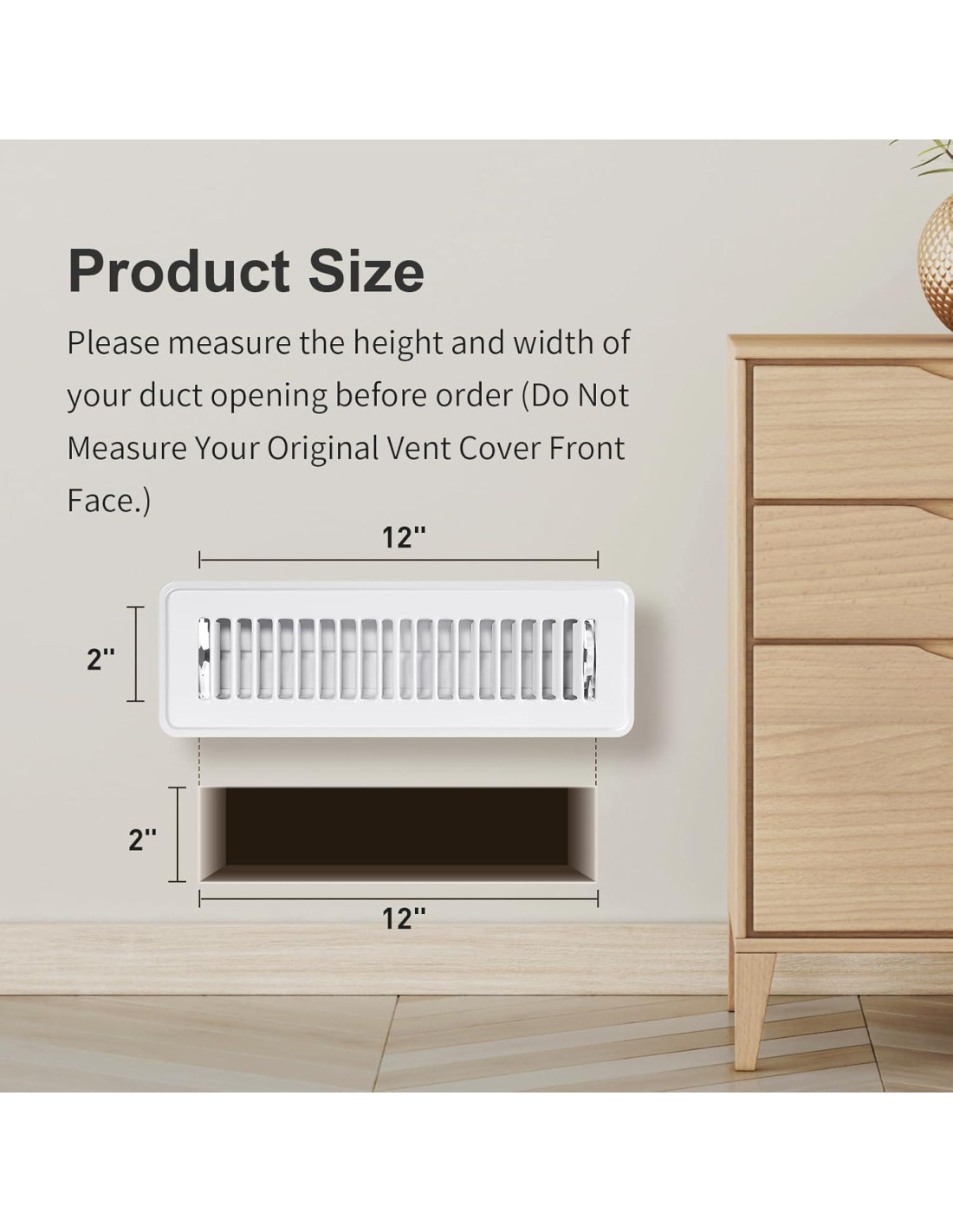 - Cubiertas de Ventilación Versátiles para Pisos del Hogar y Más: Nuestras cubiertas de ventilación 2x12 para pisos del hogar se adaptan sin esfuerzo a pisos o paredes: adecuadas para hogares, oficinas, restaurantes y hoteles. El diseño minimalista se integra en cualquier decoración.