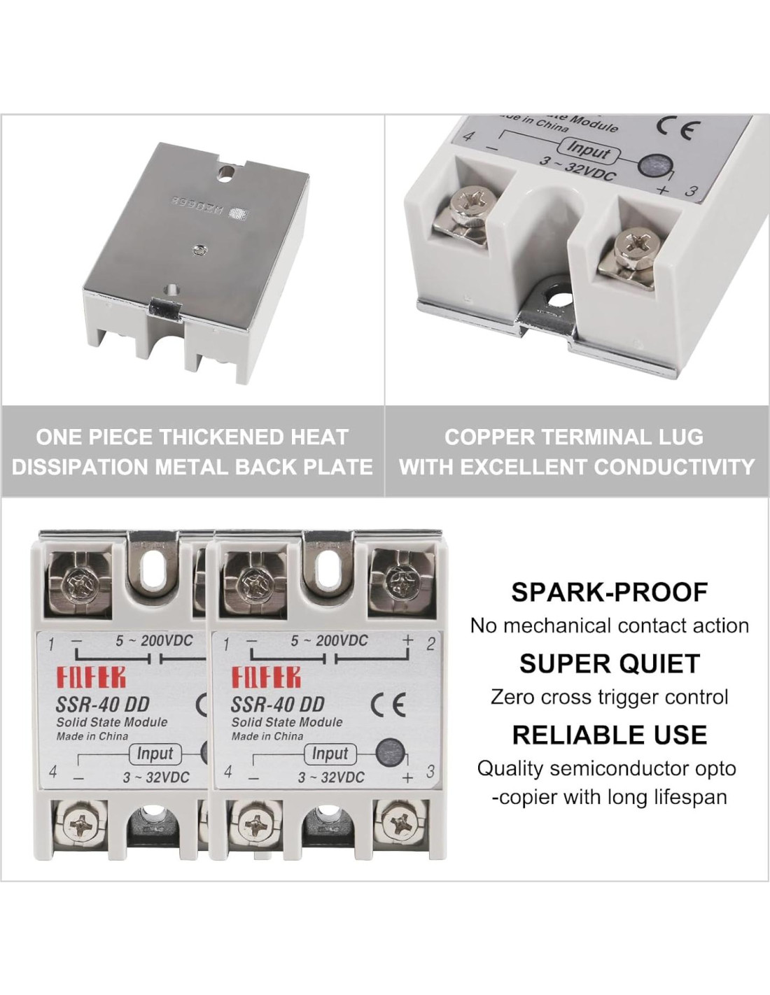 - Paquete incluido: 2 piezas Relé de Estado Sólido SSR-25DA y 2 piezas disipador de calor negro