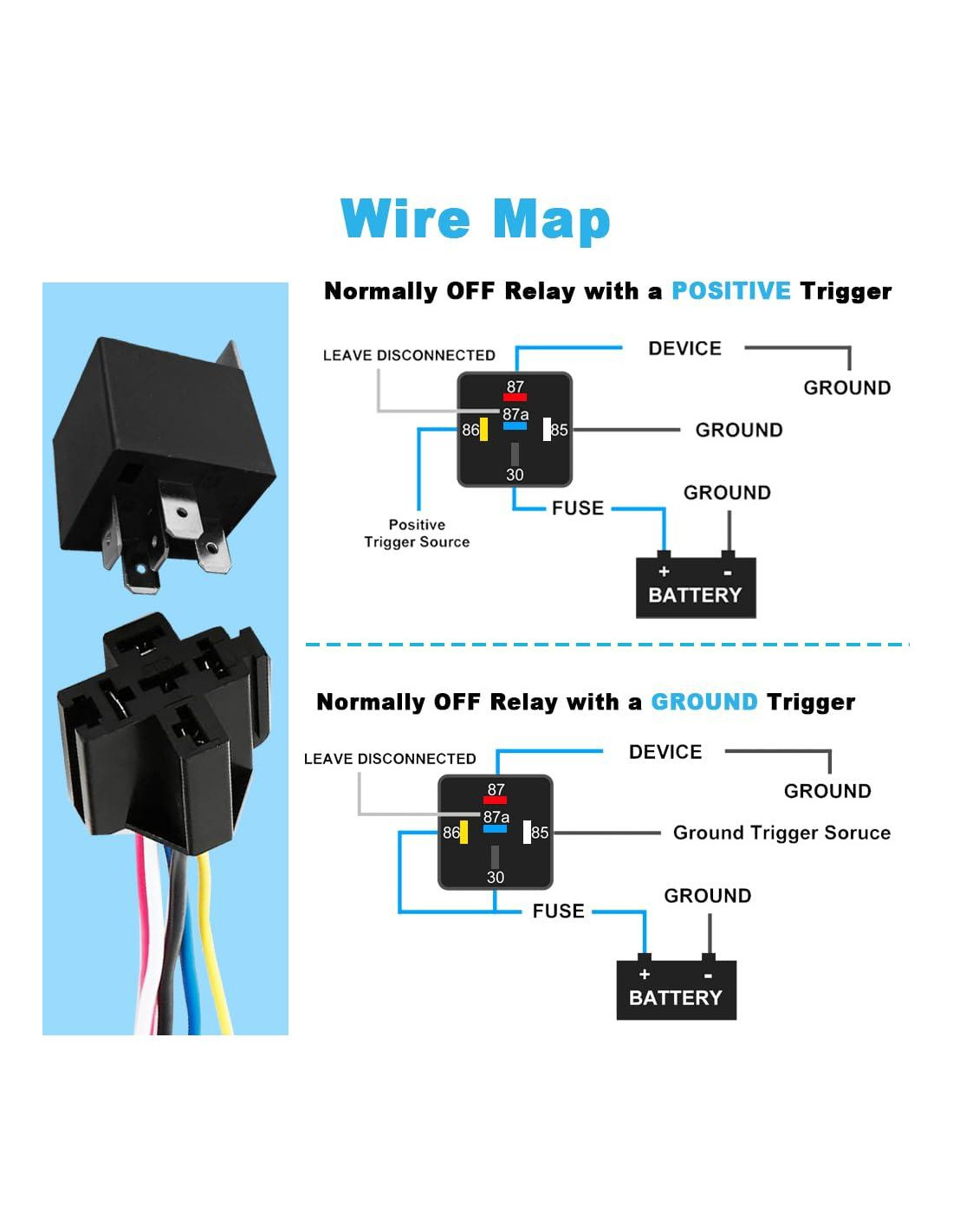 - Fácil de instalar Cableado Fácil - Los conectores del relé vienen con cables etiquetados por color para una conexión conveniente de cargas/accesorios. Lengüeta de montaje de metal en el relé para una fácil instalación