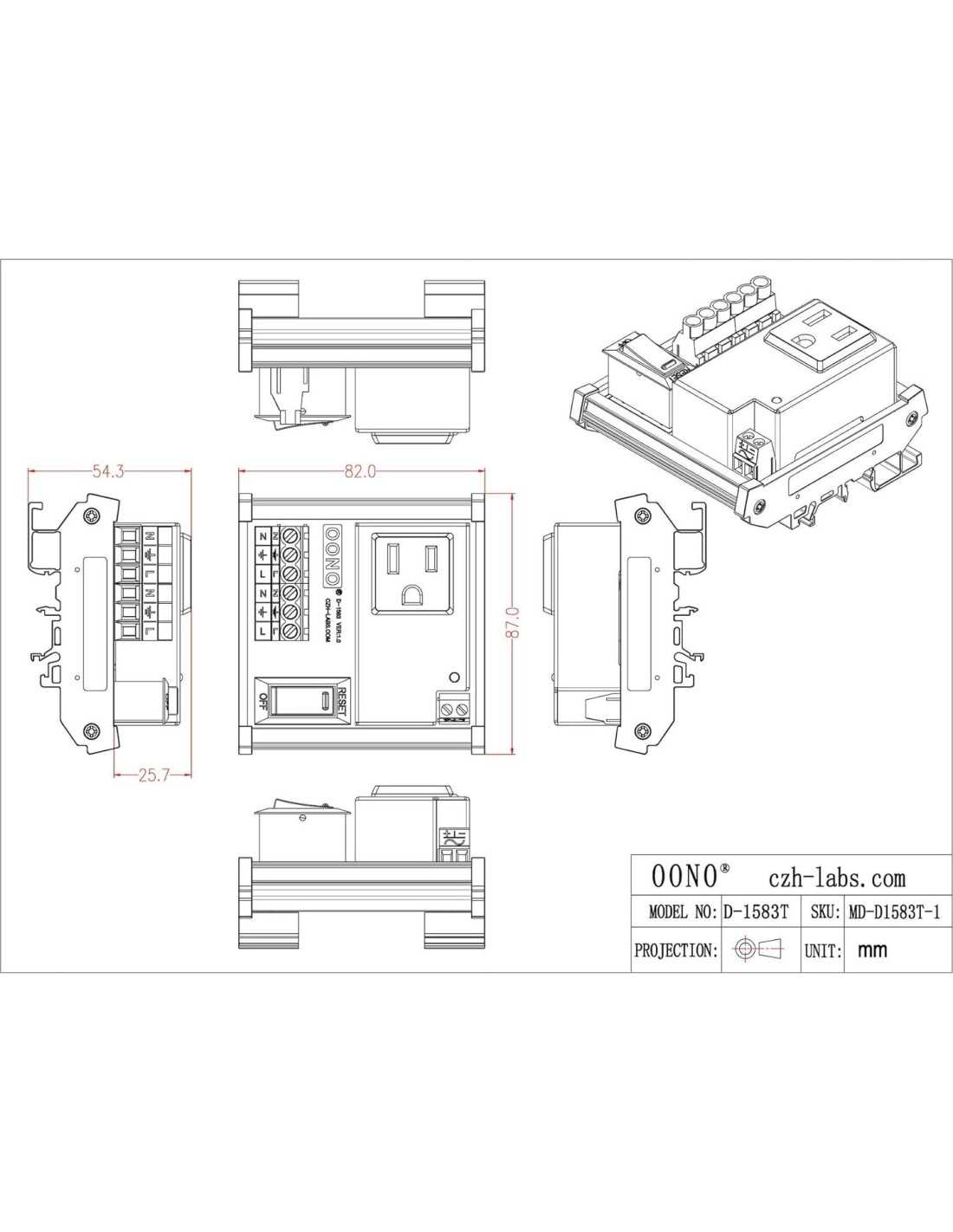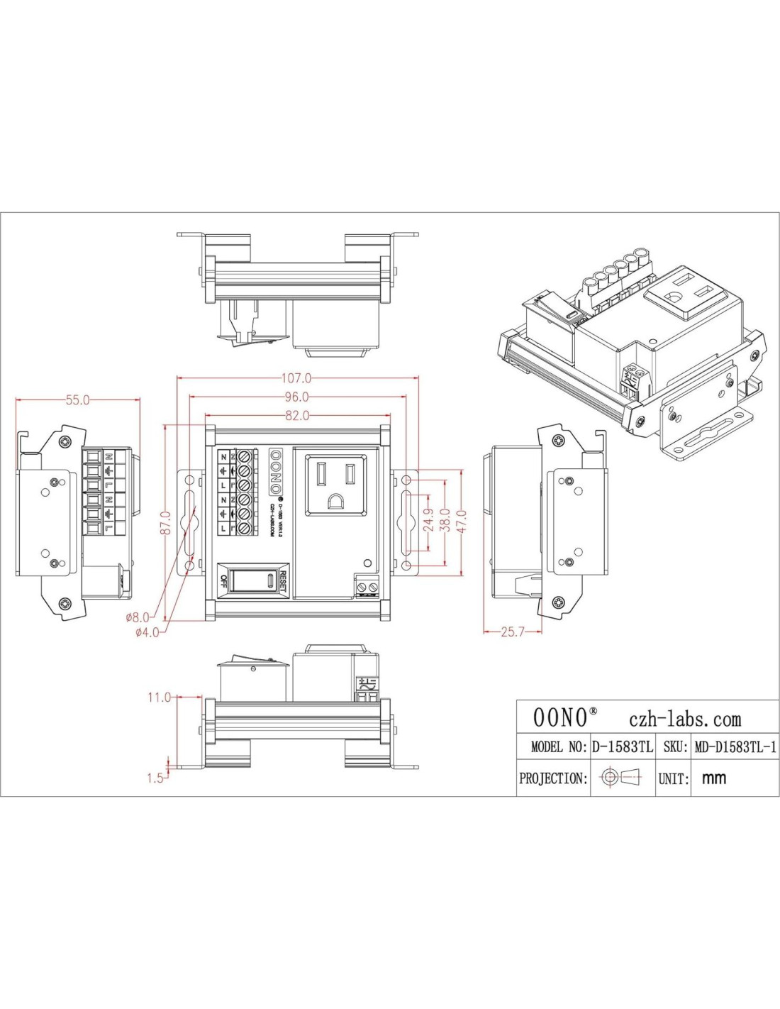 - Certificado para seguridad con bloques de terminales certificados UL, CE y CQC, PCB certificado UL 94-V0, soporte de montaje en riel DIN certificado UL/CE, protector de sobrecarga certificado UL, y receptáculos AC NEMA 5-15R certificados UL/CE.