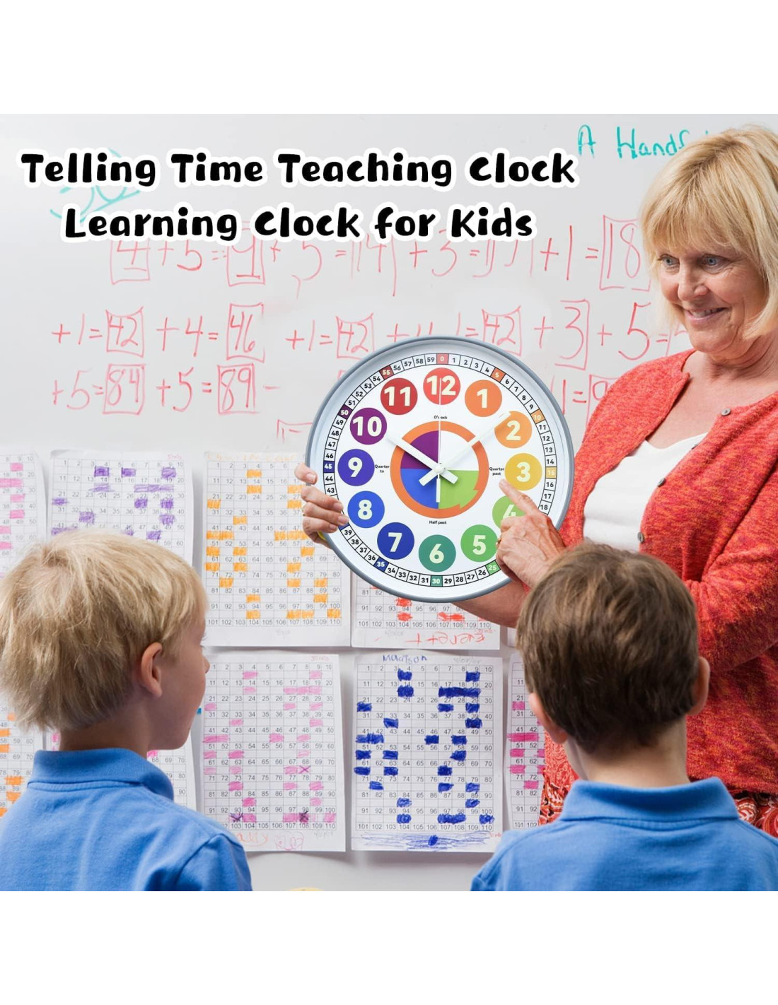 - [Los niños aprenden a decir la hora fácilmente] : Nuestro reloj de pared para niños de 12 pulgadas diseñado especialmente con cara y números coloridos, tiene toda la información que necesitas para enseñar la hora, incluyendo la visualización de 60 segundos/minutos, y etiquetado con 'o'clock', 'quarter past', 'half past', y 'quarter to', lo que facilita a los niños entender y decir la hora.