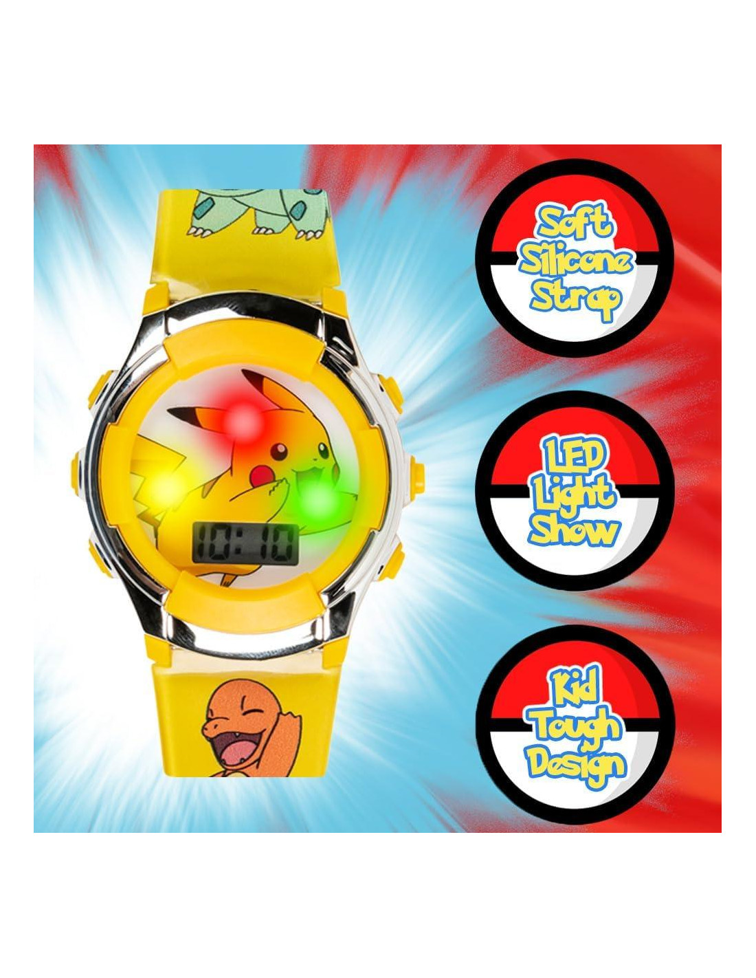 - Esfera de Pikachu Parpadeante - Presenta a Pikachu en la carátula del reloj con una pantalla LCD parpadeante para más diversión