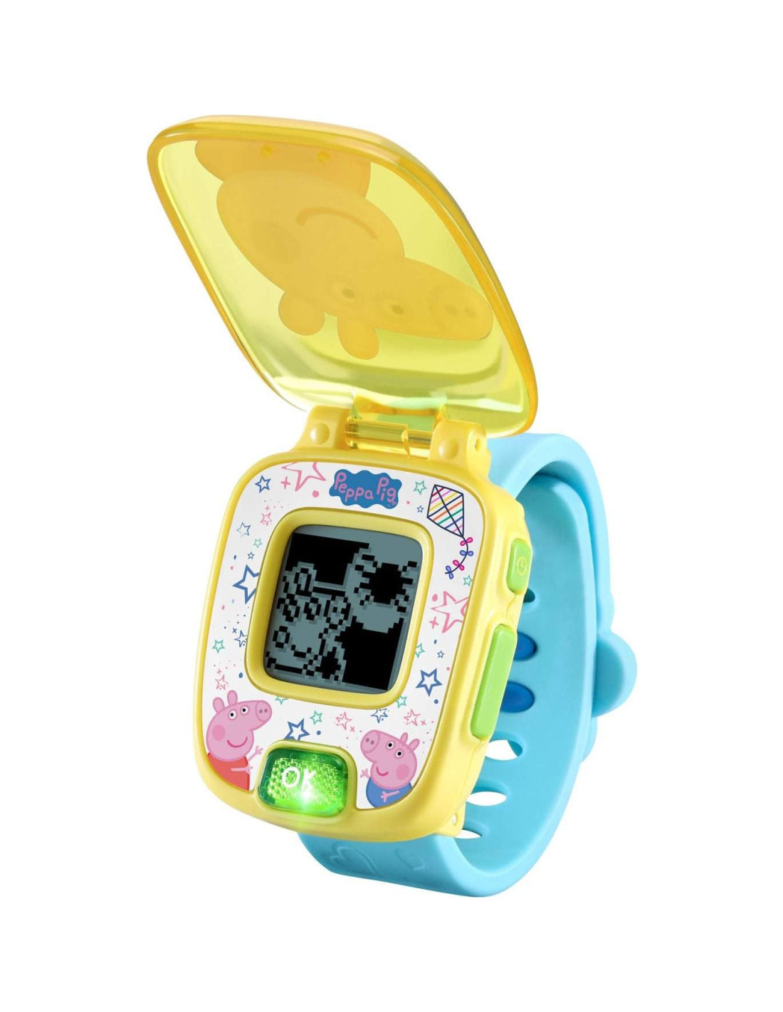 ¡Es hora de juegos de números y más con el Reloj de Aprendizaje Peppa Pig! Peppa Pig hace que el aprendizaje cobre vida con un reloj de pulsera que entretiene con la voz de Peppa Pig diciendo sus frases favoritas. Ocho opciones de carátulas de reloj de Peppa Pig hacen que decir la hora sea extra interesante. Los más pequeños exploran conceptos de tiempo y construyen hábitos tempranos con una alarma de cucú, temporizador y cronómetro. ¡Haz que "cinco minutos para la cena" sea algo que los niños puedan medir! Este reloj interactivo incluye cuatro juegos de aprendizaje en niveles que enseñan a los pequeños a contar, elegir el número menor o mayor, clasificar y emparejar. Cierra el reloj con una tapa protectora que presenta la cara sonriente de Peppa Pig. ¡Mantén el aprendizaje al alcance de la mano! Destinado para edades de 3 a 6 años. Requiere una batería de litio CR2450. Batería incluida solo para fines de demostración. Se recomienda una nueva batería para uso regular.