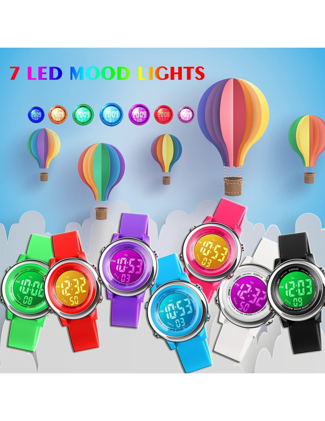 - RELOJ DIGITAL: Diseño de esfera deportiva a la moda para niños, aspecto deportivo. Gran esfera y números con luz, muestra la hora claramente en la oscuridad. Usa lámpara EL, presiona el botón "LUZ" para ver la hora claramente en la luz.