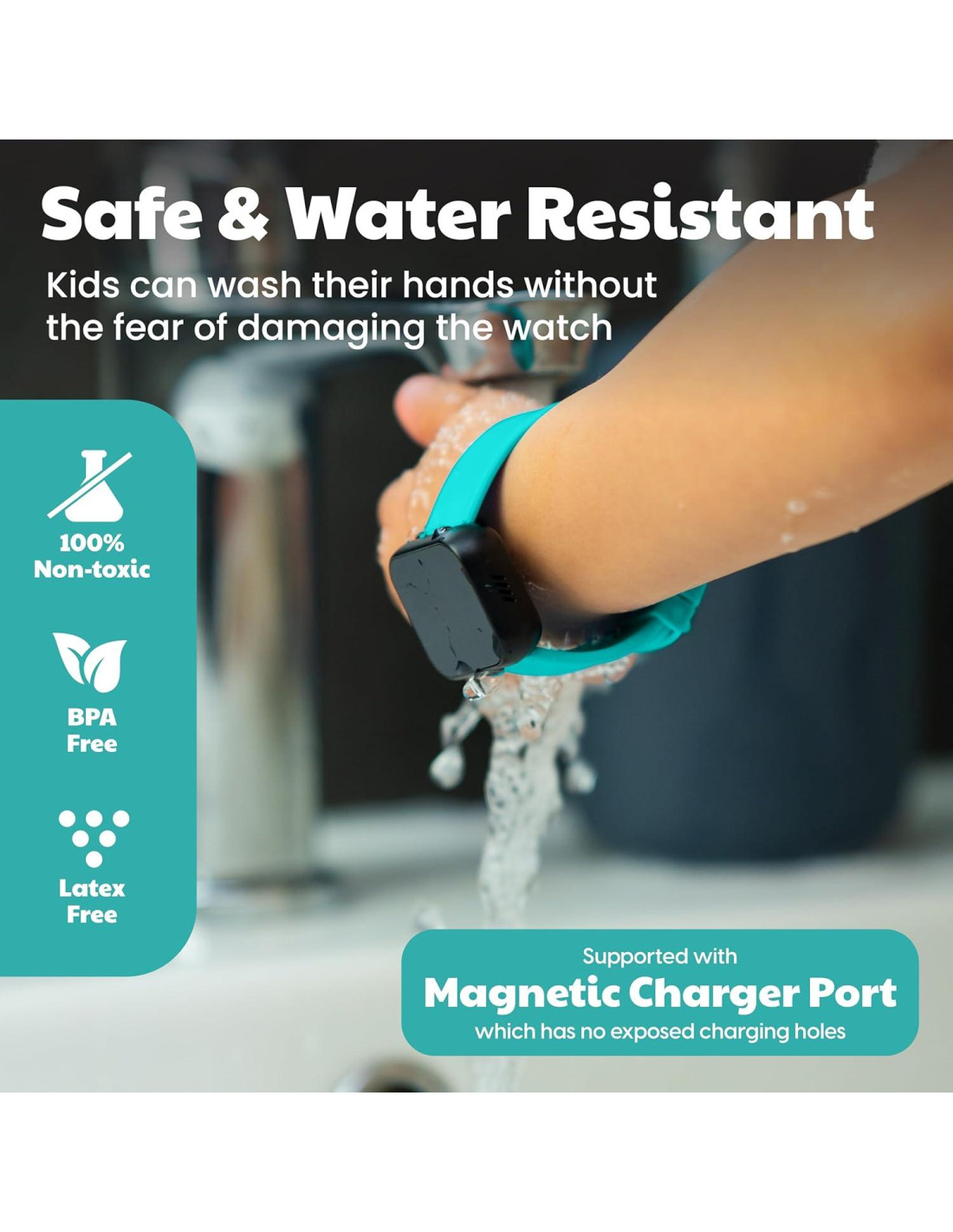 - MEJORADA RESISTENCIA AL AGUA Y VIDA ÚTIL DE LA BATERÍA - ¡No es necesario quitarse el reloj cada vez que tus hijos van al baño! Pueden lavarse las manos o jugar con agua sin miedo a dañar el reloj. El modelo de reloj V2 mejorado solo necesita cargarse aproximadamente una vez a la semana.
