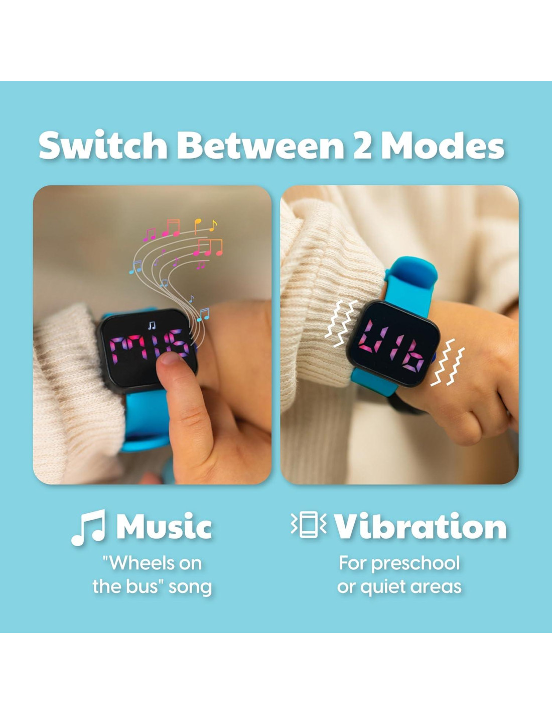 - ENTRENA A TUS NIÑOS FÁCILMENTE CON UNA ALARMA DE MELODÍA DIVERTIDA - el reloj es programable para reproducir la melodía "Las Ruedas del Autobús" para recordar a tu hijo que debe ir al baño cada 30, 60, 90 minutos o 2 horas, y se repite automáticamente. El reloj puede cambiar de música a vibración si es necesario para la escuela o áreas silenciosas.