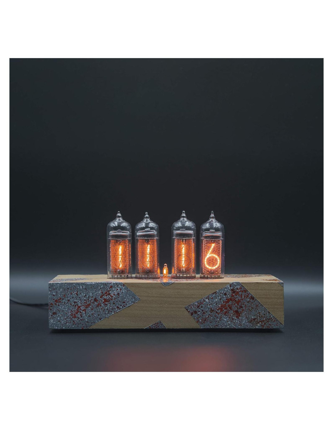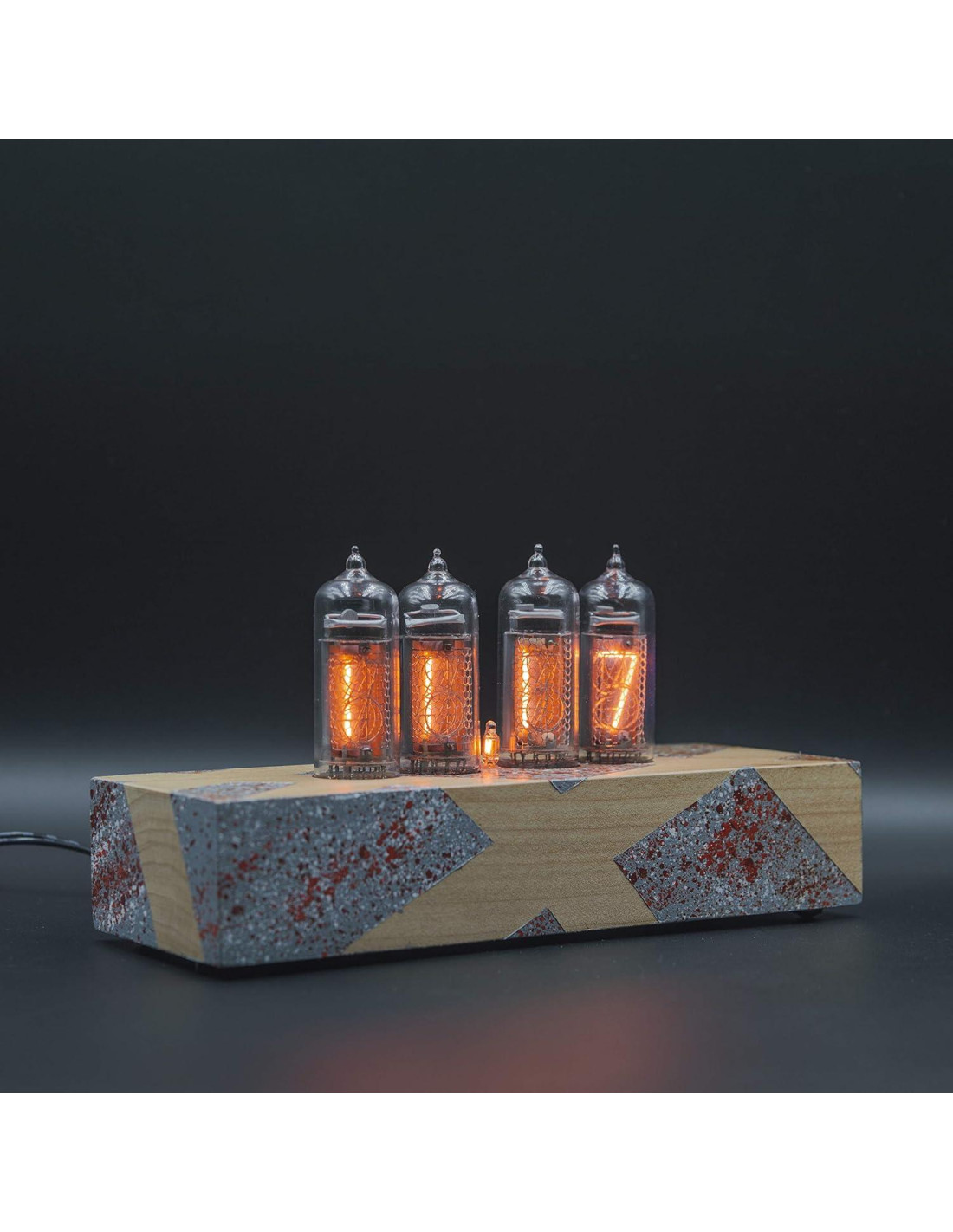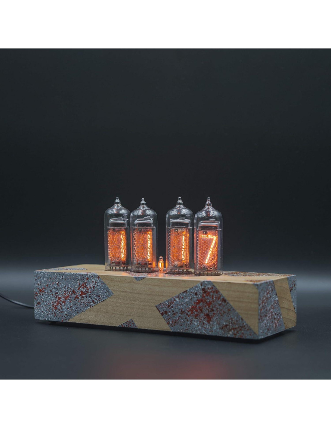 Este es un reloj pintado a mano. ¡Podemos hacer un diseño individual de acuerdo a tus requisitos! Nuestro Reloj de Tubo Nixie Vintage está hecho a mano utilizando 4 tubos Nixie IN-14. Estos tubos Nixie tienen al menos 35 años de historia y provienen de la antigua Unión Soviética. Podemos describir mejor nuestro reloj como una tecnología vintage combinada con una elegancia artesanal en una sutil caja de madera hecha a mano. Este hermoso reloj trae a tu hogar un pedazo de historia con sus duraderos componentes vintage. El suave y cálido resplandor de los tubos Nixie lo hace perfecto para usarlo en tu dormitorio sin perturbar tu sueño. Los impresionantes colores brillan de una manera debidamente distribuida y embellecida que le da a tu habitación un toque elegante. CARACTERÍSTICAS El brillo del reloj está preestablecido en un nivel medio. Los LEDs azules detrás de los tubos Nixie te ayudarán a ajustar el reloj y tienen efectos decorativos que puedes desactivar si lo deseas. Puedes mostrar la hora en formato de 12 o 24 horas. Conector de batería incorporado para un respaldo de tiempo adecuado durante interrupciones de energía. El Reloj Nixie Vintage fue diseñado para funcionar por debajo de su punto de operación para asegurar que los tubos duren más para ti. Para evitar el envenenamiento del cátodo, verás un efecto de máquina tragamonedas de 1:00 a 4:00. Al encender los números de manera uniforme, extendemos la vida útil del reloj. Apagado automático de la luz de fondo para un funcionamiento cómodo en modo nocturno de 23:00 a 7:00. El Reloj Nixie puede funcionar sin problemas en todos los continentes porque acepta 110V - 240V en frecuencias de 50 y 60 Hz. ¿QUÉ HAY DENTRO DE LA CAJA? Reloj de Tubo Nixie Vintage Adaptador de corriente (incluido enchufe EU/US) Manual del usuario Demos a tu habitación un hermoso toque con este duradero reloj nixie vintage. Haz que tu familia y amigos adoren tu habitación en su próxima visita.