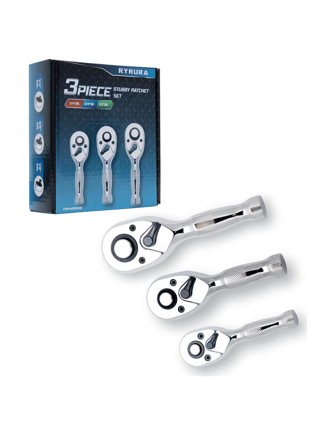 - Componentes incluidos: Llave de Carraca con Mango Stubby de 1/4", Llave de Carraca con Mango Stubby de 3/8", Llave de Carraca con Mango Stubby de 1/2"
