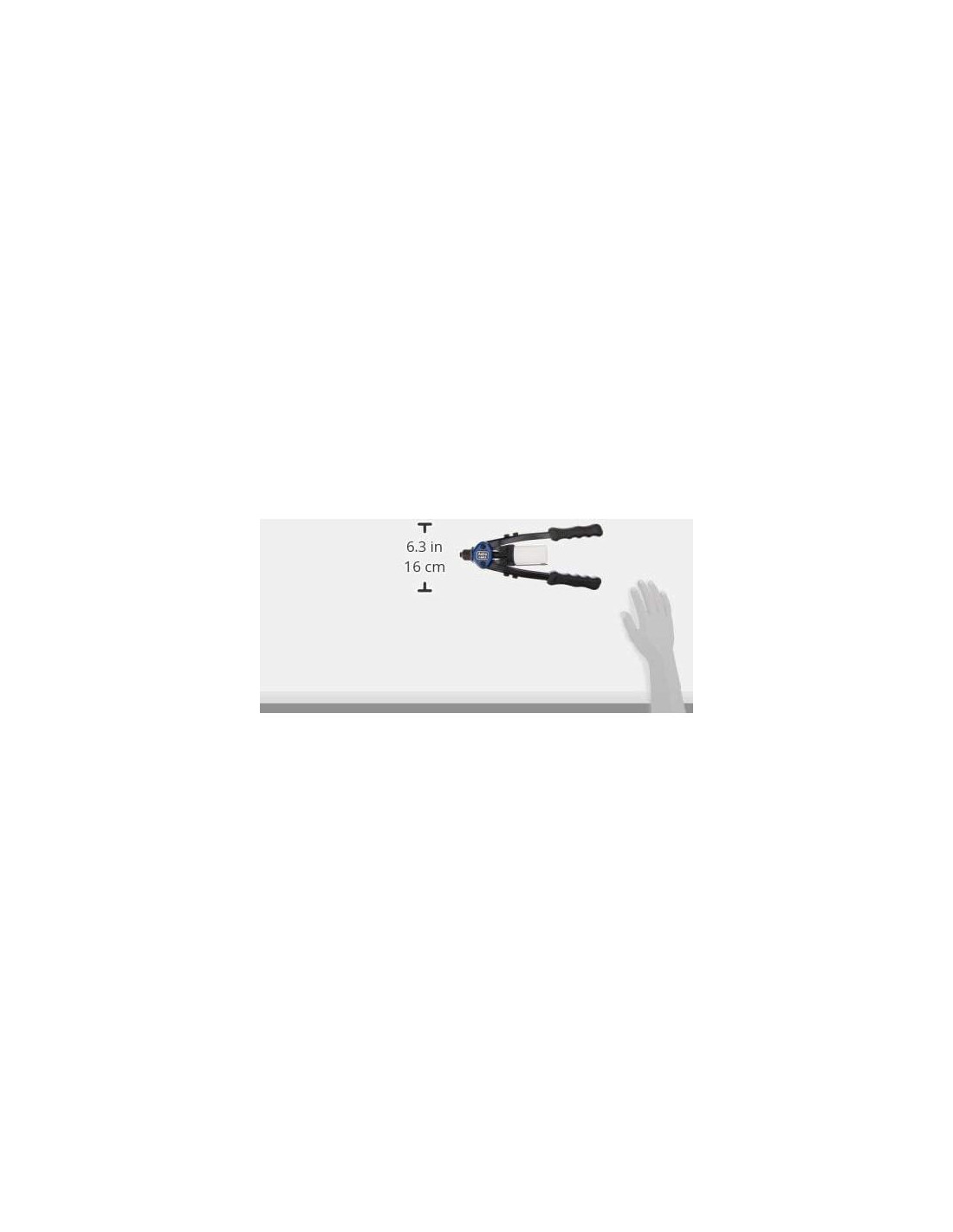 - Remachadora de brazo largo más corta que puede operar hasta 1/4-pulgada (6.4mm) de remaches de acero inoxidable