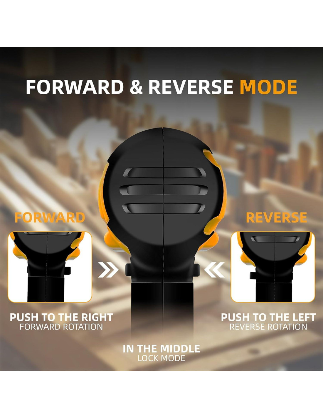 - [Un botón para cambiar entre avance y retroceso] La pistola de remaches cuenta con extracción automática de clavos y retirada con una operación de un solo botón, eliminando la necesidad de cambiar manualmente entre rotación hacia adelante y hacia atrás. El botón de cambio puede convertirse fácilmente en retroceso para asegurar la retirada completa del clavo sin complicaciones
