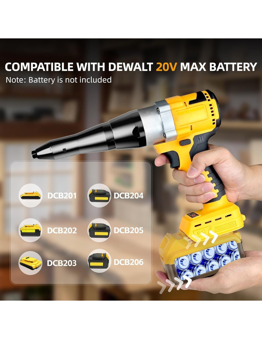 - [Compatible con Batería] Esta Pistola de Remaches es compatible con la batería Dewalt 20V MAX, como DCB200, DCB201, DCB203, DCB204, DCB205, DCB206. Nota: Pistola de Remaches a Batería Solo, batería no incluida