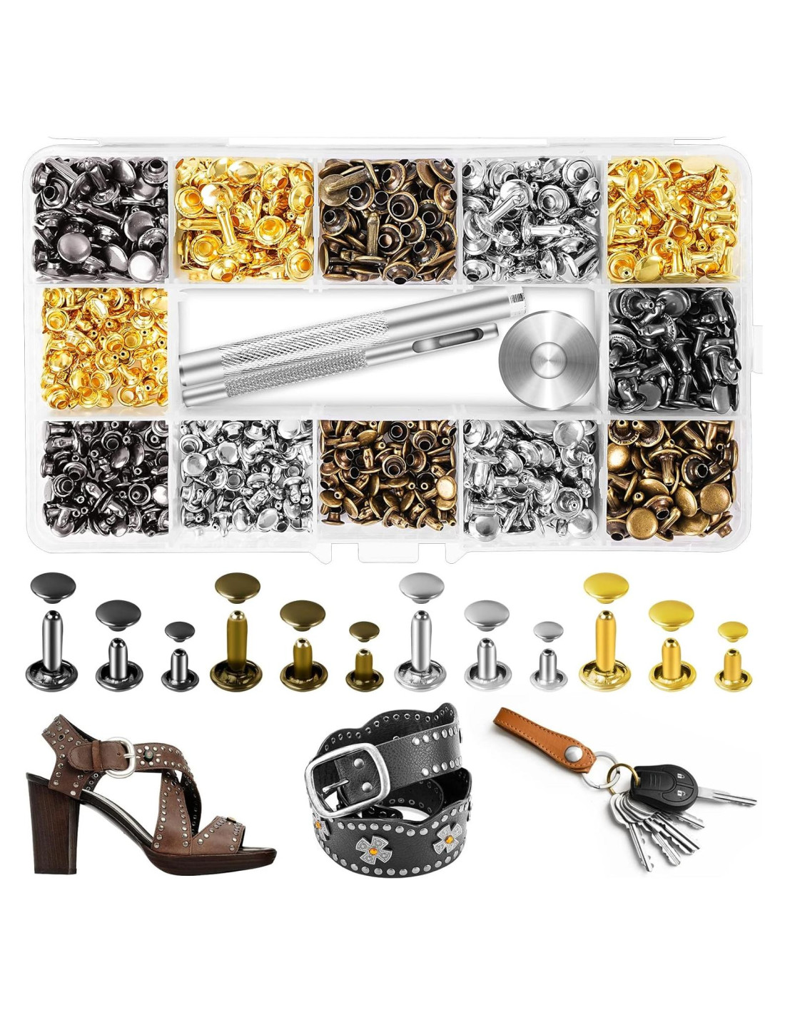 - [Valor 420 Juegos de Remaches]: El set de remaches de cuero incluye 420 juegos de remaches de latón de doble tapa en 4 colores y 3 tamaños, con 3 herramientas de instalación, suficiente para satisfacer tu demanda de diferentes manualidades DIY.
