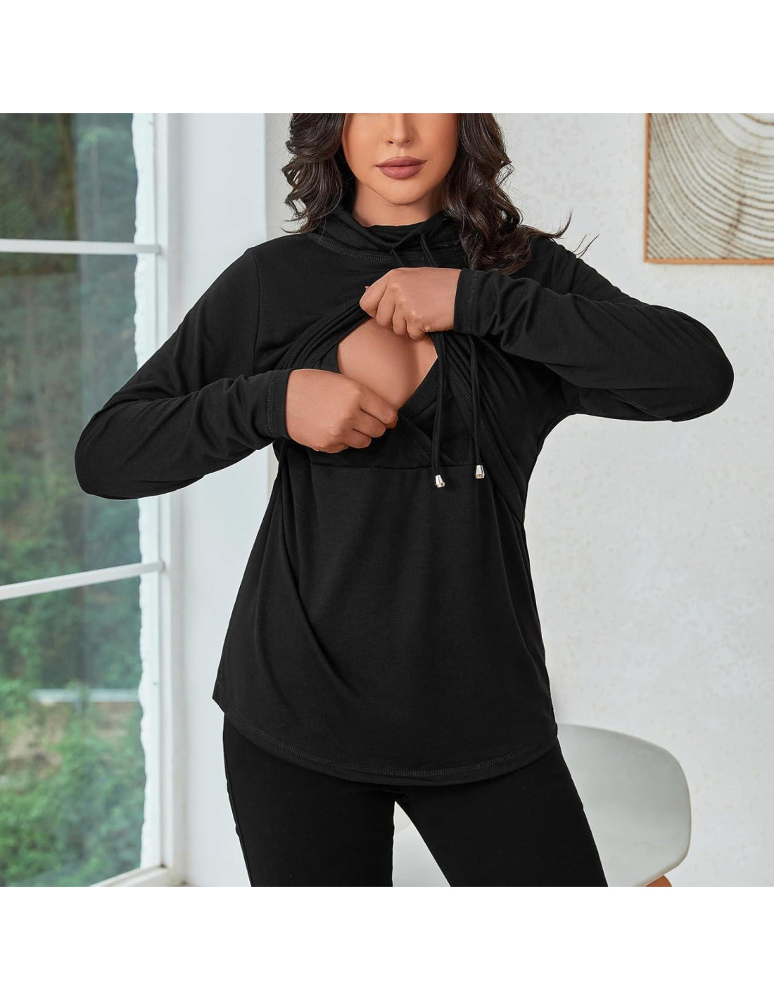 - Diseño: Mantente abrigada y con estilo con esta camiseta de lactancia que presenta un acogedor cuello de embudo de toalla y diseño con cordón. Es fácil y discreta para la lactancia.