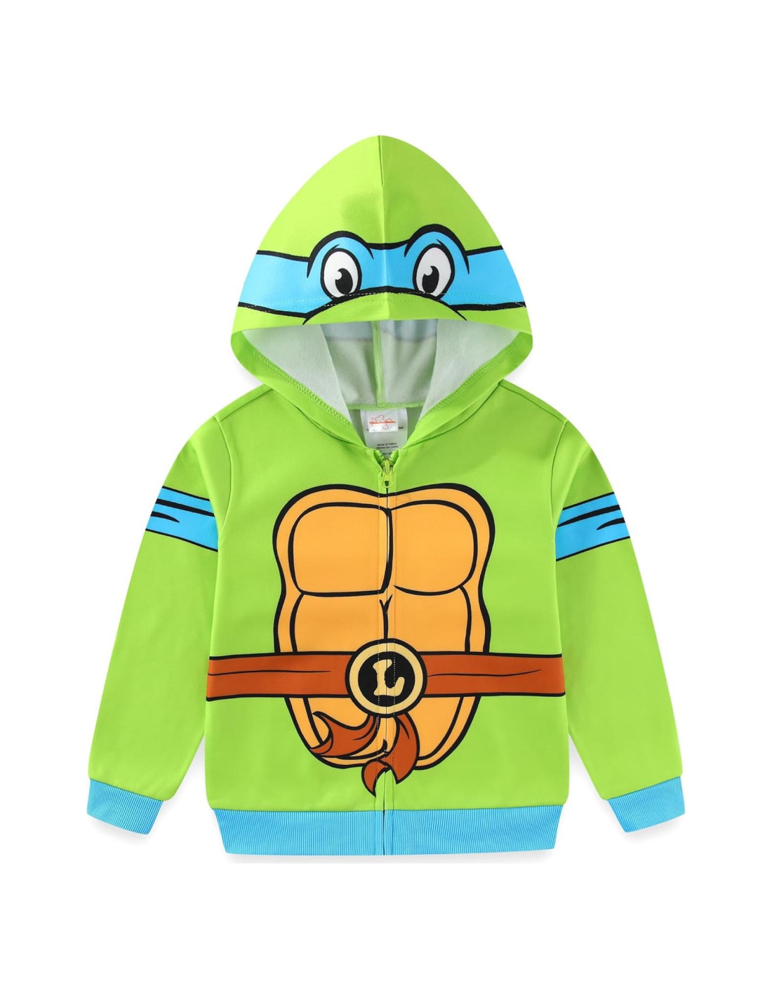 - Sudadera con capucha de cremallera completa para niños Leonardo de las Tortugas Ninja de Nickelodeon, la mejor sudadera para niños pequeños y grandes que aman las aventuras llenas de acción.