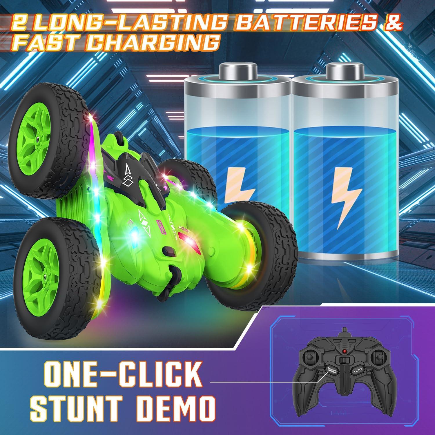 Auto súper divertido tanto para chicos como para grandes, funciona genial tanto adentro como afuera. Bien hecho y muy duradero, hace volteretas y trucos. A los chicos también les encantan las luces que tiene. Le doy 4 estrellas solo porque la batería no dura mucho.