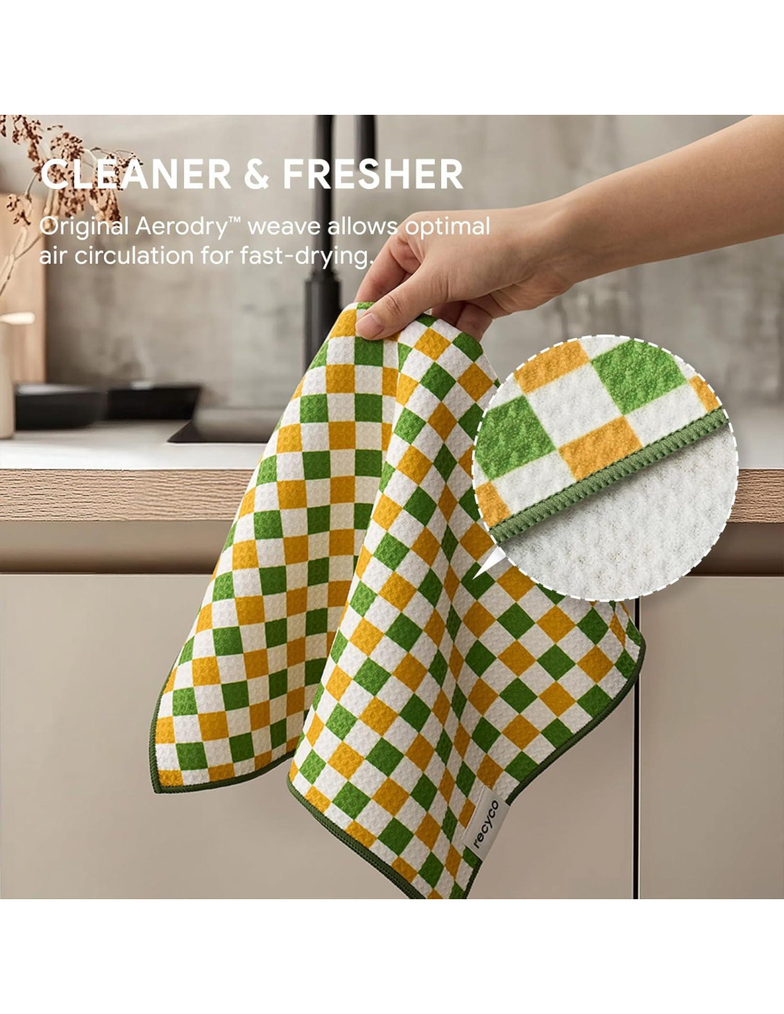 - [ Secado Rápido ] - Nuestro exclusivo tejido aerodry asegura que estas toallas se sequen sorprendentemente rápido. Secándose 4 veces más rápido que la tela regular, estarán listas para la siguiente tarea sin ningún olor persistente, dejándote una experiencia de toalla de cocina más fresca, especialmente para cocinas ocupadas.