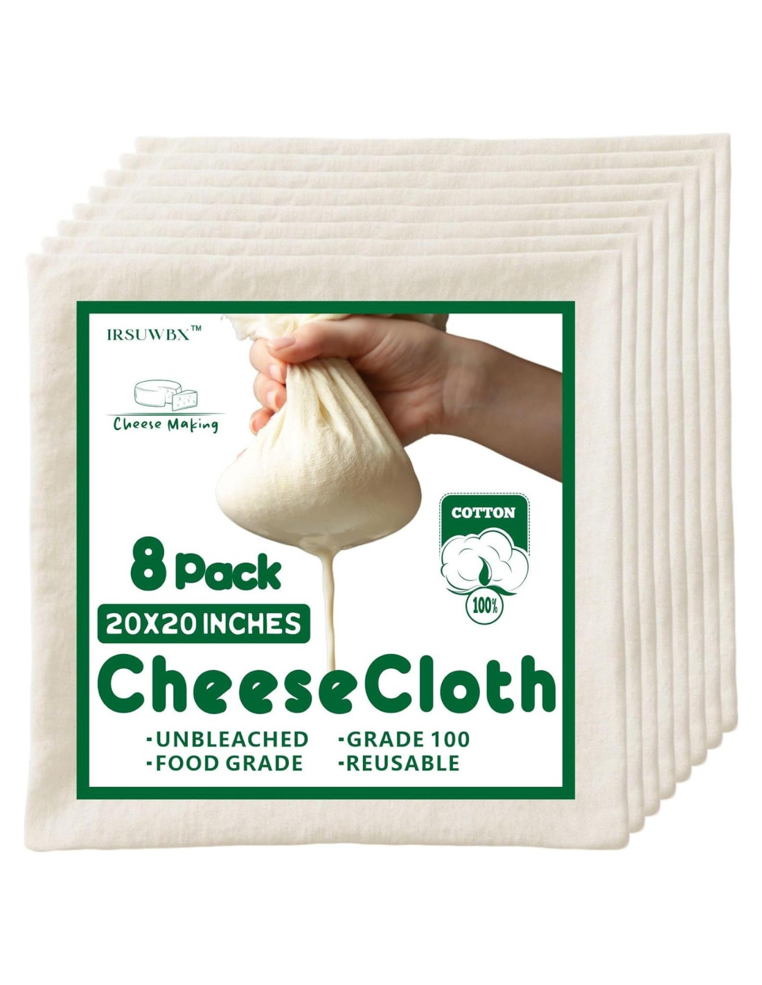 - Material - Nuestro paño de queso está hecho de 100% algodón sin blanquear, garantizando seguridad y salud. Es completamente resistente al color y no transferirá ningún color a queso, yogur, pavo o cualquier otro alimento.