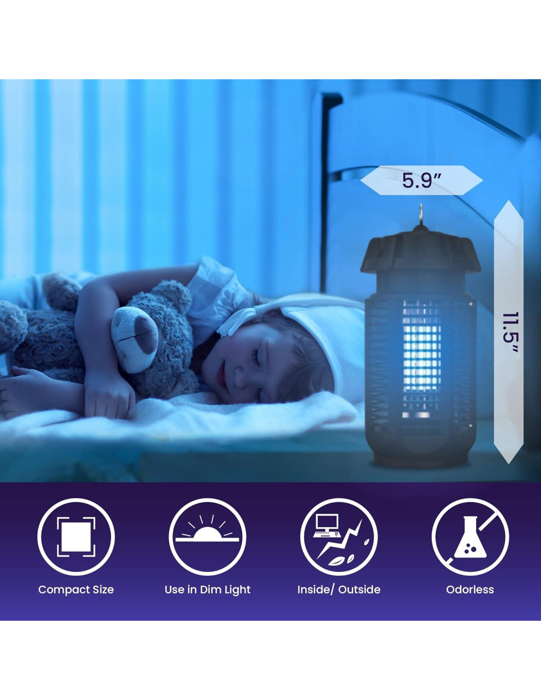 - SEGURIDAD INTERIOR: Nuestro diseño sin motor elimina silenciosamente los insectos, y la carcasa de ABS ignífuga proporciona seguridad de última generación. Este zapper para insectos interior es fácil de operar, con un interruptor de encendido/apagado y un cable de cinco pies para conveniencia y flexibilidad. También se incluye una pantalla de seguridad para niños, haciendo que este asesino de mosquitos sea especialmente amigable para la familia.