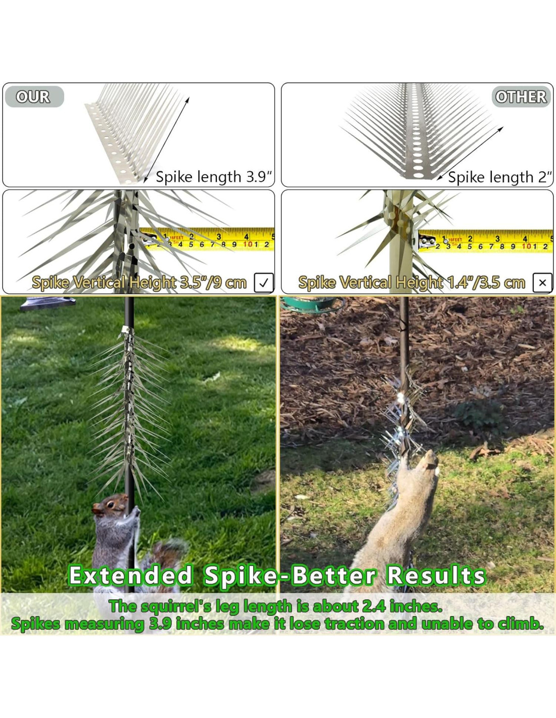 - Los protectores para postes de comederos de aves están hechos de acero inoxidable duradero y no sufren los problemas de desgaste de las alternativas de plástico. Los ángulos de los picos para ardillas en el comedero de aves se pueden ajustar libremente. La longitud del pico se ha mejorado a 8.9 cm para mejorar el efecto.