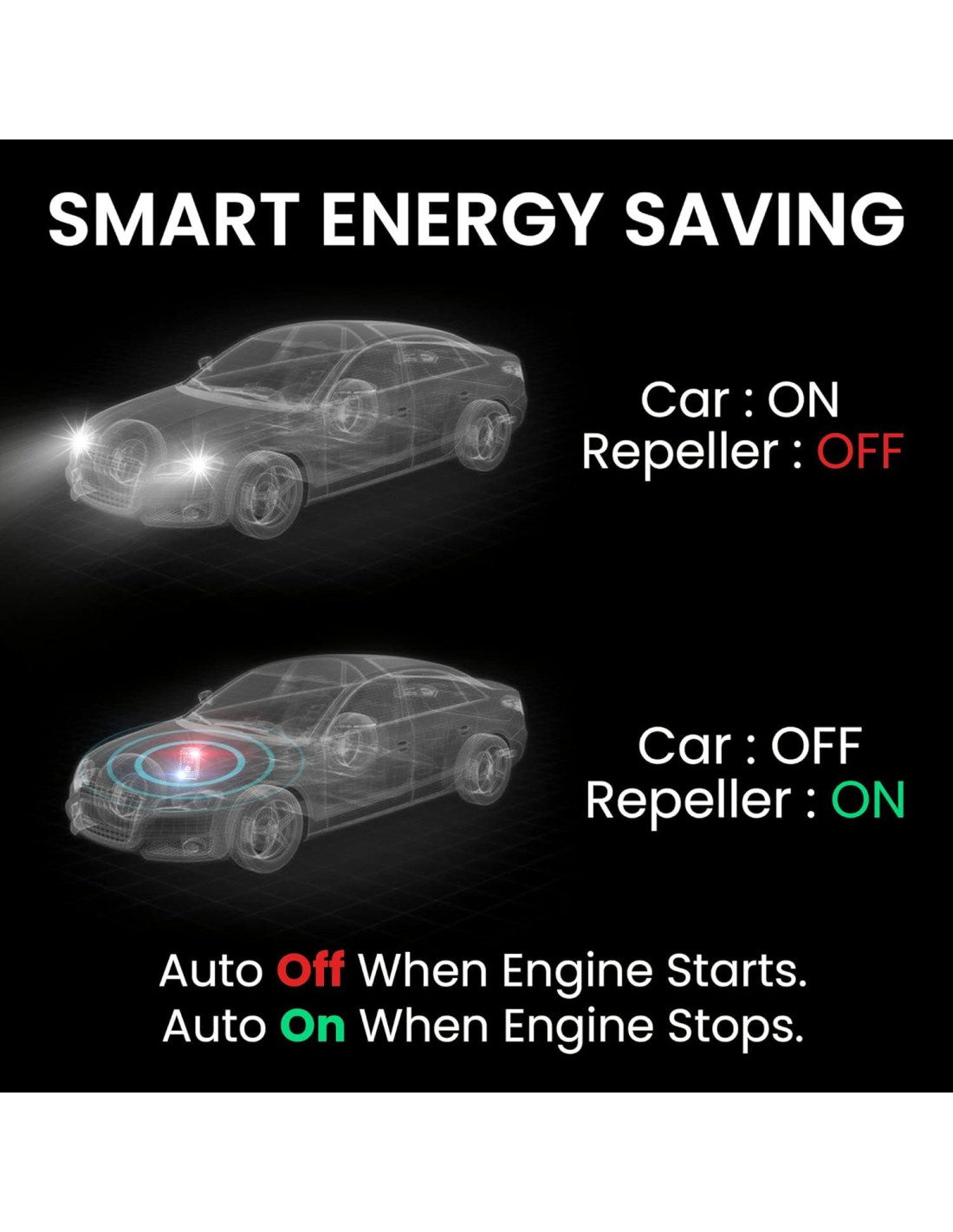 - PROTEGE TU AUTOMÓVIL DE DAÑOS POR ROEDORES. Este repelente de roedores fácil de instalar bajo el capó previene que los roedores (ratas, ratones, ardillas, martas, ardillas listadas, etc.) y otras plagas hagan nidos en tu automóvil y muerdan los cables. Lo hace emitiendo una combinación de ultrasonido y luces estroboscópicas que los roedores odian. Se incluyen 4 bridas de plástico reutilizables para que puedas adjuntar fácilmente el dispositivo a tu motor.