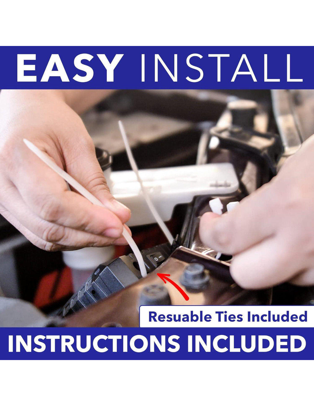 Conecté el dispositivo a la batería de mi automóvil, las luces parpadearon durante 30 segundos y luego se detuvieron. ¿Está roto? No, ¡en absoluto! El dispositivo alternará entre parpadear durante 30 segundos y luego detenerse durante 3 minutos. Esto es para evitar que los roedores se acostumbren a las luces parpadeantes. ¿El dispositivo agotará la batería de mi automóvil? No. Se apaga automáticamente cuando el voltaje de la batería cae por debajo de 9.2V. ¿Esto funcionará con mi automóvil? Sí, funciona con todos los vehículos, incluidos automóviles de gasolina, híbridos y eléctricos. Simplemente conéctalo al sistema de 12 voltios a través del cable incluido. ¿El dispositivo es solo para uso bajo el capó, o puedo usarlo en casa? Puedes usarlo en cualquier lugar. No solo puede alimentarse bajo el capó a través de la batería de 12 voltios del automóvil, sino que también puede alimentarse a través del cable USB incluido, o incluso funcionar de forma independiente a través de las baterías recargables incluidas. ¿Cómo reutilizo las bridas? Presiona y mantén el gatillo junto a la cabeza de la brida. Esto desbloquea la cabeza y te permite sacar la cola a través del agujero en la cabeza. Dado que las bridas son reutilizables, puedes reubicar el dispositivo tantas veces como desees.