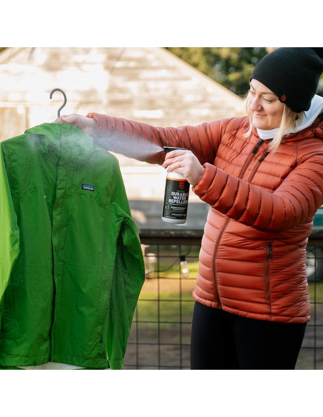 - Reimpermeabiliza y restaura chaquetas, overoles, pantalones de esquí, guantes, trajes secos y waders de GORE-TEX; añade repelencia al agua a fundas de tienda de nylon, chaquetas de plumas y mochilas