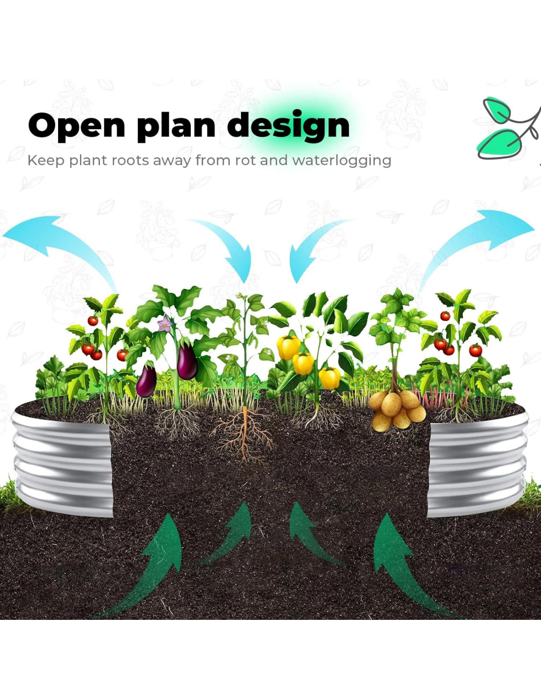 - Diseño de fondo abierto Esta cama elevada está diseñada con una base abierta con buen drenaje, lo que puede evitar eficazmente la acumulación de agua y la descomposición, y proteger mejor las raíces de la planta para que puedan absorber completamente los nutrientes.