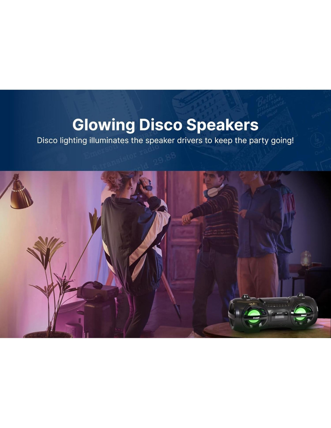 - LLEVA LA FIESTA A CUALQUIER LUGAR CON EL EMERSON CD BOOMBOX CON LUCES LED Y CONECTIVIDAD BLUETOOTH -- Eleva tu experiencia de escucha con el Emerson CD Boombox, que cuenta con luces LED dinámicas, conectividad Bluetooth y un diseño versátil que es perfecto para cualquier ocasión.