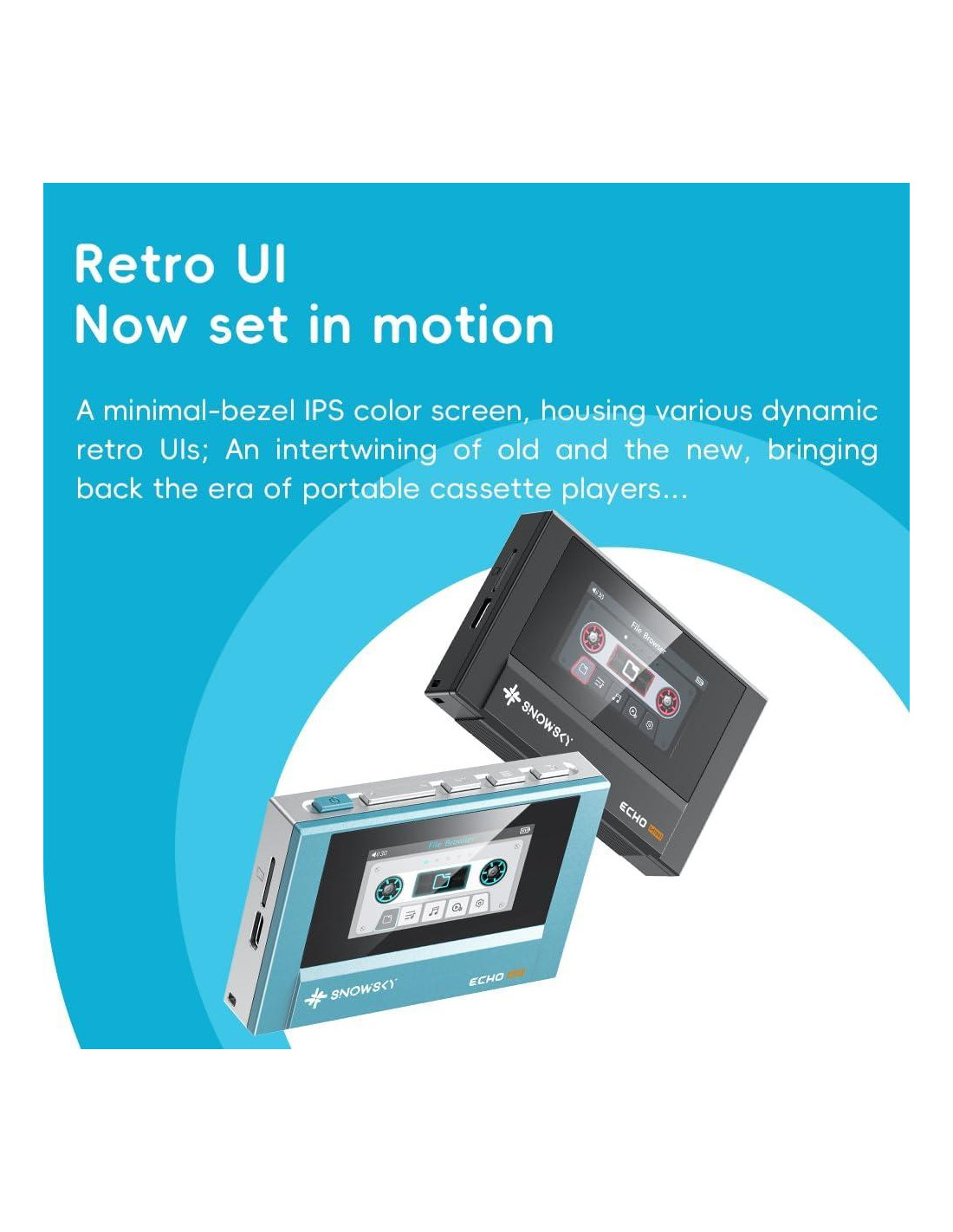 - Con una pantalla de color IPS de vista completa, una interfaz dinámica inspirada en lo retro y controles de botón clásicos, el ECHO MINI combina el encanto vintage con la funcionalidad moderna, evocando la época dorada de los reproductores de casete portátiles.