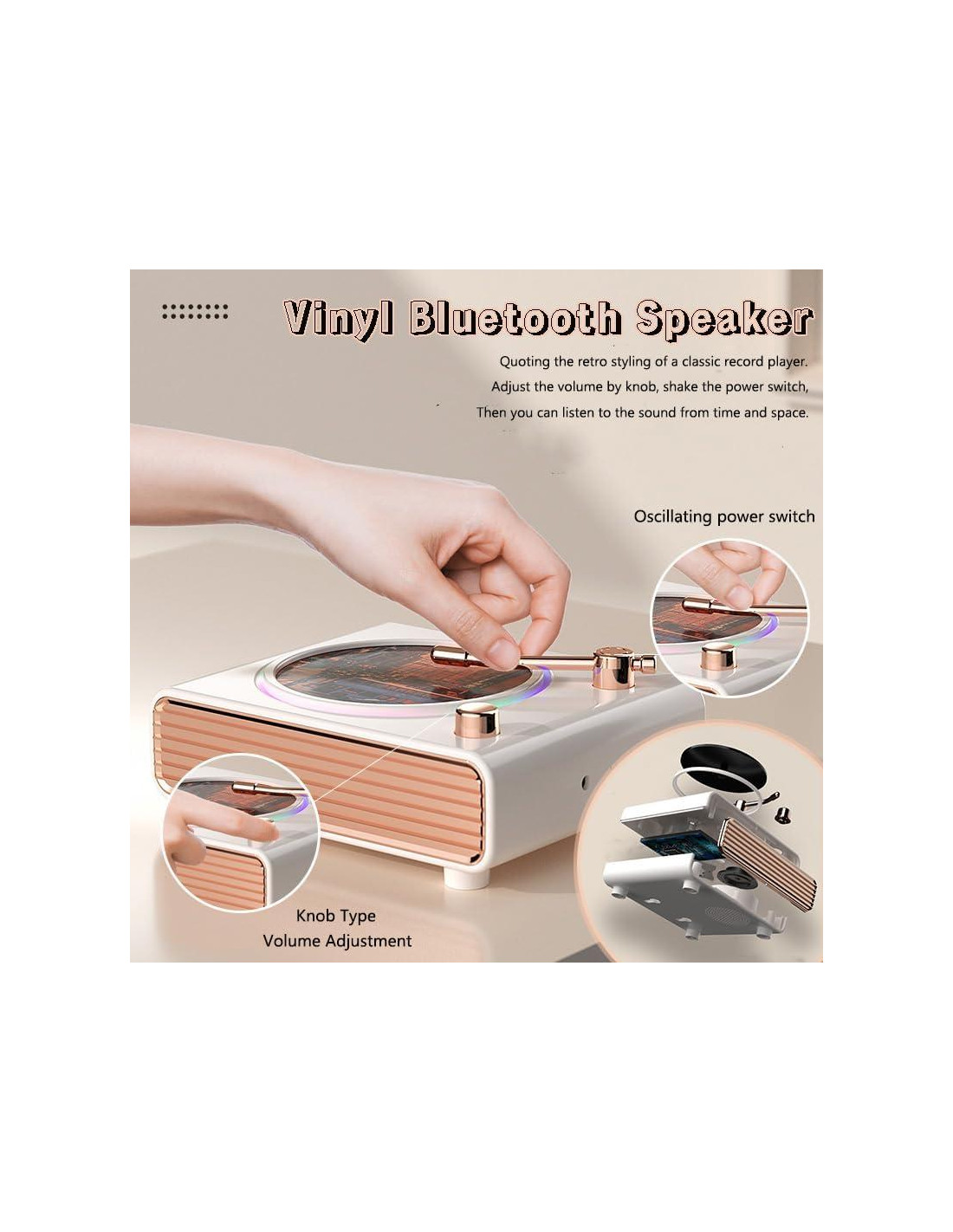 - Un Regalo Maravilloso: El mini altavoz portátil reproductor de vinilo es un regalo estético multifuncional y práctico que nunca deja de satisfacer a los destinatarios. Puedes enviárselo a tus amigos y seres queridos porque el altavoz bluetooth estético no solo es un buen altavoz bluetooth inalámbrico lindo, sino que también puede ser una decoración para la habitación; También es una buena opción para regalar a los niños, porque el aspecto moderno de las radios para niños es una gran atracción para ellos.