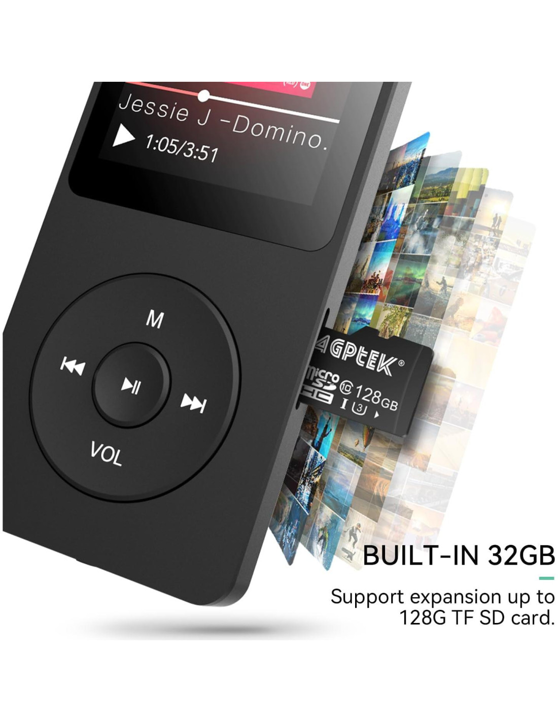 - [Calidad de sonido sin pérdida] Soporta formatos: MP3, WMA, OGG, WAV, APE, FLAC, AAC-LC, ACELP. [Nota: No soporta directamente Audiolibros e iTunes.] Altavoz incorporado, le brinda una experiencia de escucha asombrosa. [Consejos: Primero, mantenga presionado el botón "VOL" para ingresar al control de volumen, luego presione el botón izquierdo o derecho para aumentar o disminuir el volumen.]