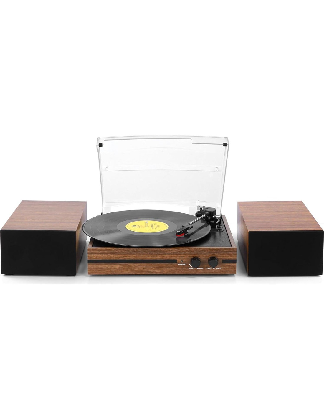 - [Perfecto para Principiantes] Un diseño de coincidencia estándar de un tornamesa y dos altavoces, no es necesario comprar accesorios por separado. Configuración de modo simple y operación de botones, perfecto para principiantes. Múltiples opciones de función para que los principiantes exploren el misterio de los discos de vinilo.