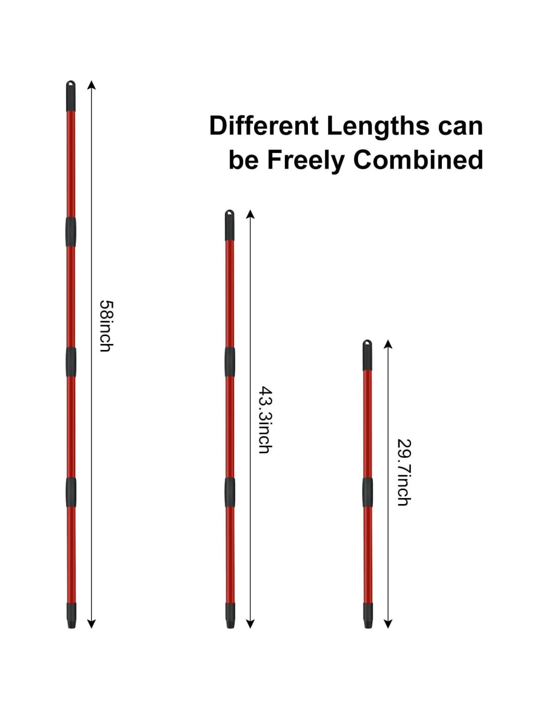 - [Mucho Más Largo] - Puede usar individualmente estas 4 secciones del mango de reemplazo de mop para lograr una longitud de 76 cm a 147 cm según su altura, para que no necesite agacharse para limpiar el suelo. La longitud ajustable hace que limpiar el suelo sea sin esfuerzo. Con la longitud más larga, puede alcanzar el techo y la ventana.