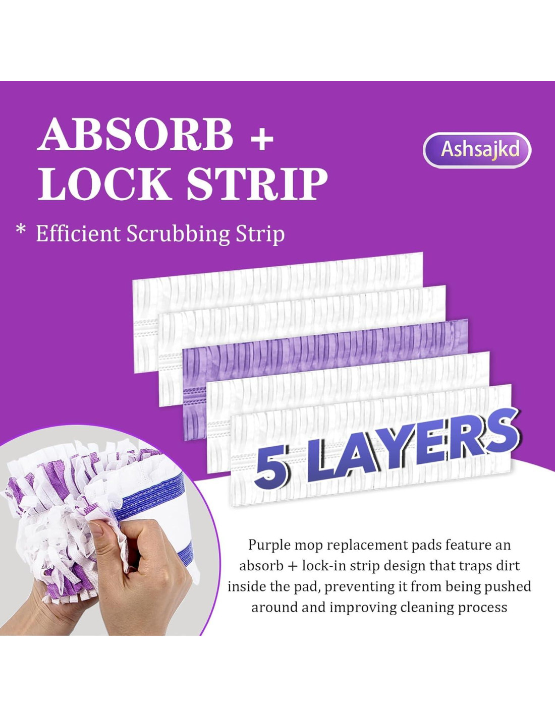 - Fuerte Absorción: Estas almohadillas de reemplazo de mopa moradas son muy gruesas y están hechas de buenos materiales, absorbiendo rápidamente el agua, y el piso estará seco en unos pocos segundos, mientras se limpia el piso no dejará rastros después