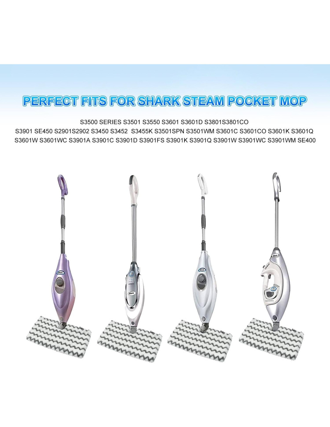 - [Ajuste Perfecto para Mopas de Vapor Shark] - La almohadilla para Mop de Vapor Pocket funciona con la Mopa de Vapor Pocket Shark S3500 Series, S3501, S3501SPN, S3501WM, S3550, S3601, S3601C, S3601CO, S3601D, S3601K, S3601Q, S3601W, S3601WC, S3801, S3801CO, S3901, S3901A, S3901C, S3901D, S3901FS, S3901K, S3901Q, S3901W, S3901WC, S3901WM, SE400, SE450, S2902, S3450, S3452, S3455K. Esta almohadilla de reemplazo para mopa de vapor es de tamaño estándar Shark 12.6 x 7 pulgadas (32.0 x 17.8 cm). NO se ajusta a la cabeza Shark XL (16 x 6 x 1 pulgadas) (40.6 x 15.2 x 2.5 cm) y a la Mopa de Vapor Genius/Lift-Away Pro.