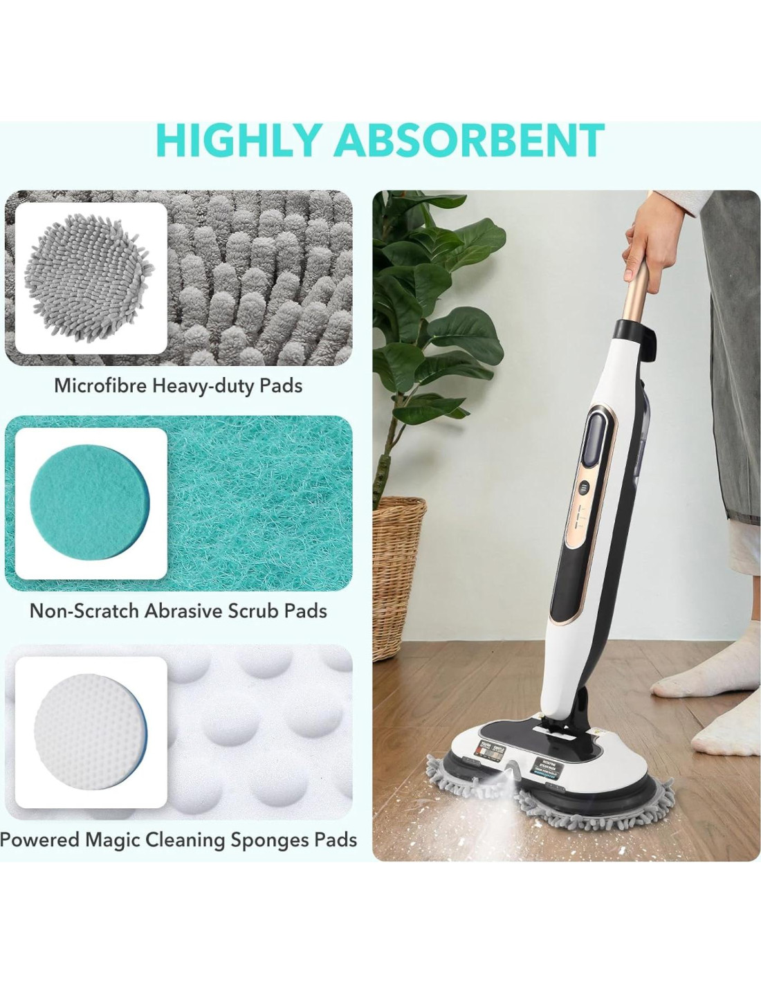 - [Para Todos los Tipos de Pisos] Use las almohadillas de mopa de vapor suaves para limpiar pelo de mascotas, escombros y suciedad sin rayar sus pisos de vinilo, madera o baldosas, mientras que las almohadillas de fregado y pulido son perfectas para limpiar suciedad pegajosa obstinada de cualquier piso duro sellado.