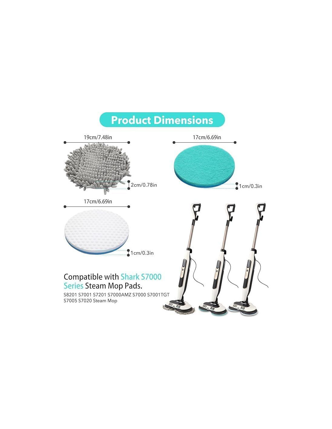 - [Almohadillas de Reemplazo Mejoradas de la Serie S7000 Compatibles con] Este paquete incluye 6 almohadillas de reemplazo de mopa de vapor y fregado de alta calidad diseñadas para funcionar con las mopas de vapor Shark S8201, S7001, S8001, S7201, S7000AMZ, S7000, S7001TGT, S7005, S7020, S7000C, S7001C, XKITP7000, S7201WBKT son perfectamente compatibles. Nota: Preste atención a la descripción del tamaño en la imagen antes de comprar si es adecuado para su mopa.