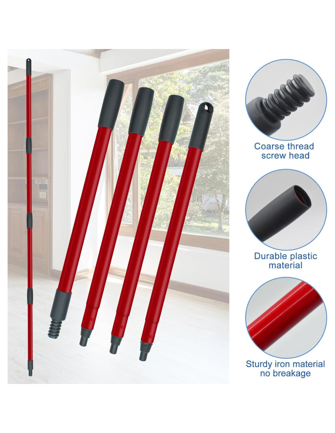 - MANGO DE MOP RESISTENTE Y DURADERO para OCEDAR: El mango de mop está hecho de material de hierro premium, es más sólido y duradero que un mango de mop de acero inoxidable normal, asegurando que durará mucho tiempo. Y la superficie del mango de mop está tratada con un proceso de pintura roja horneada para asegurar un agarre firme al limpiar, previniendo resbalones.