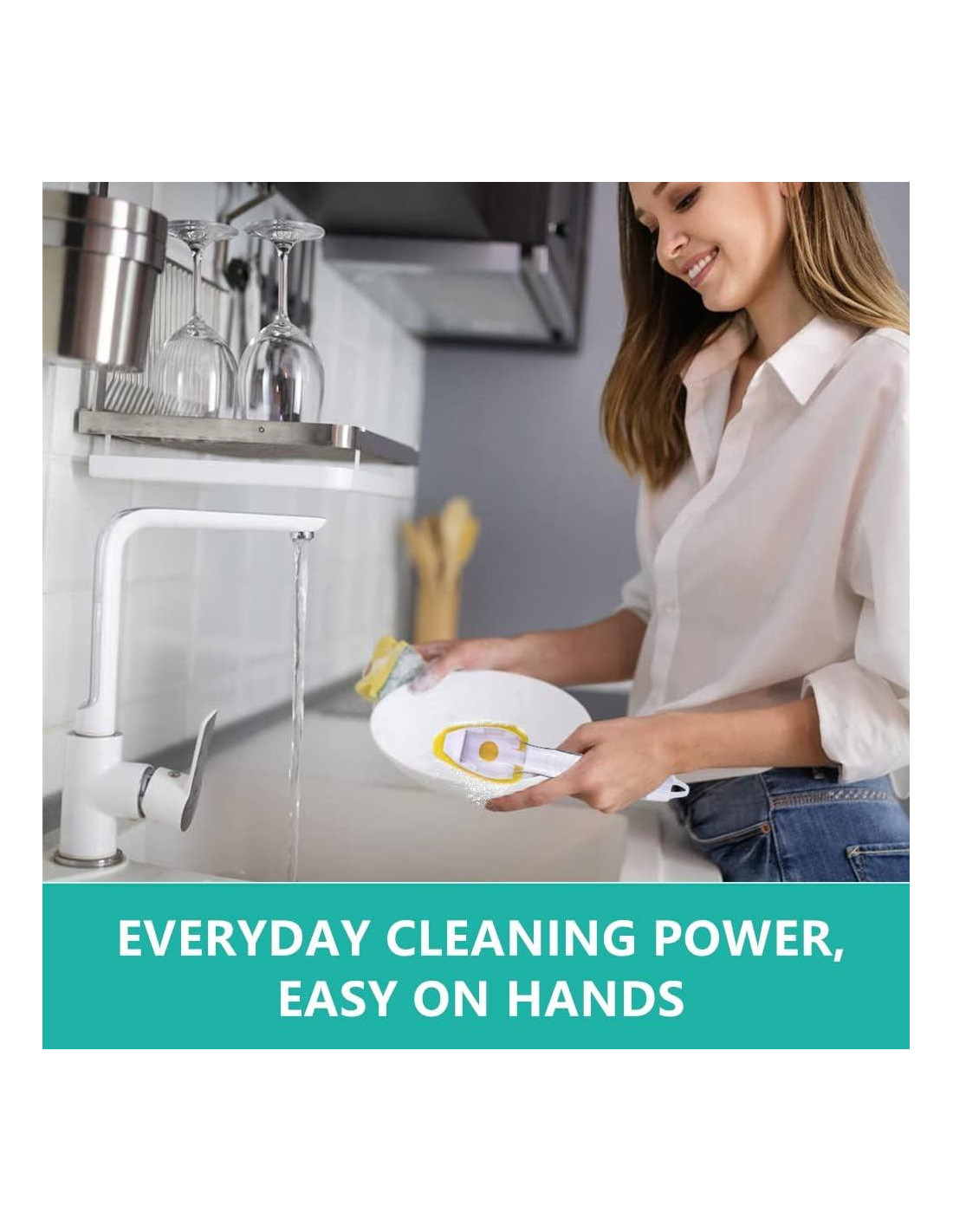 - Repuestos Mejorados: Hemos adoptado un proceso más avanzado y ecológico, utilizando fusión térmica en lugar de pegamento viscosa ordinario para asegurar la durabilidad del cabezal de esponja sin desgastar las superficies de sus platos. Este método de unión mejorado ayuda a reducir el despegado y la deformación, haciéndolo perfecto para la limpieza diaria, incluso en agua caliente. Una solución duradera para cocinas ocupadas y uso frecuente