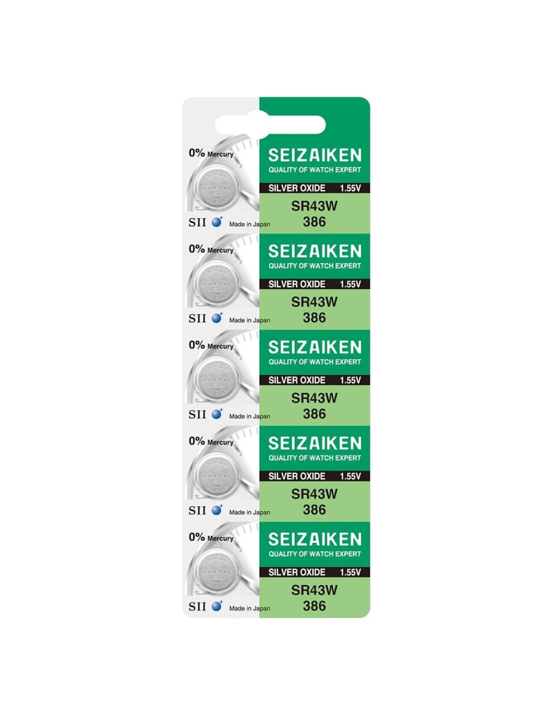 386 SR43W -- Las baterías de reloj SEIZAIKEN de SEIKO son conocidas y galardonadas por su excelente calidad, durabilidad y fiabilidad. Las baterías de óxido de plata SEIZAIKEN son incomparables en cuanto a ser a prueba de fugas y su estabilidad de voltaje. Las baterías de óxido de plata sin mercurio de Seizaiken se fabrican en un entorno de sala limpia de alta tecnología en una fábrica recién construida. Esta instalación fue diseñada específicamente para la fabricación de dispositivos electrónicos de ultra precisión e incorpora todo nuevo equipo. Dentro del entorno de sala limpia, SII ha eliminado la contaminación permitiéndonos asegurar una calidad consistente.