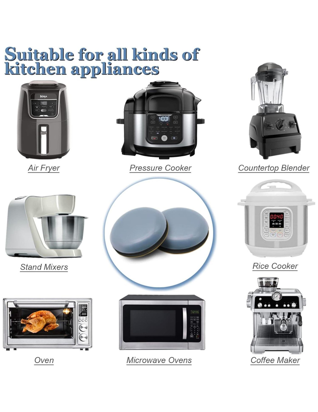 - Protege el Electrodoméstico y Ahorra Espacio: Los deslizadores para electrodomésticos pueden ser utilizados para la mayoría de los electrodomésticos pesados de hogar, permitiendo que se deslicen fácilmente sobre la mesa de trabajo sin dejar marcas o hacer un sonido fuerte, ofreciendo protección al electrodoméstico y ahorrando espacio en la mesa de trabajo.