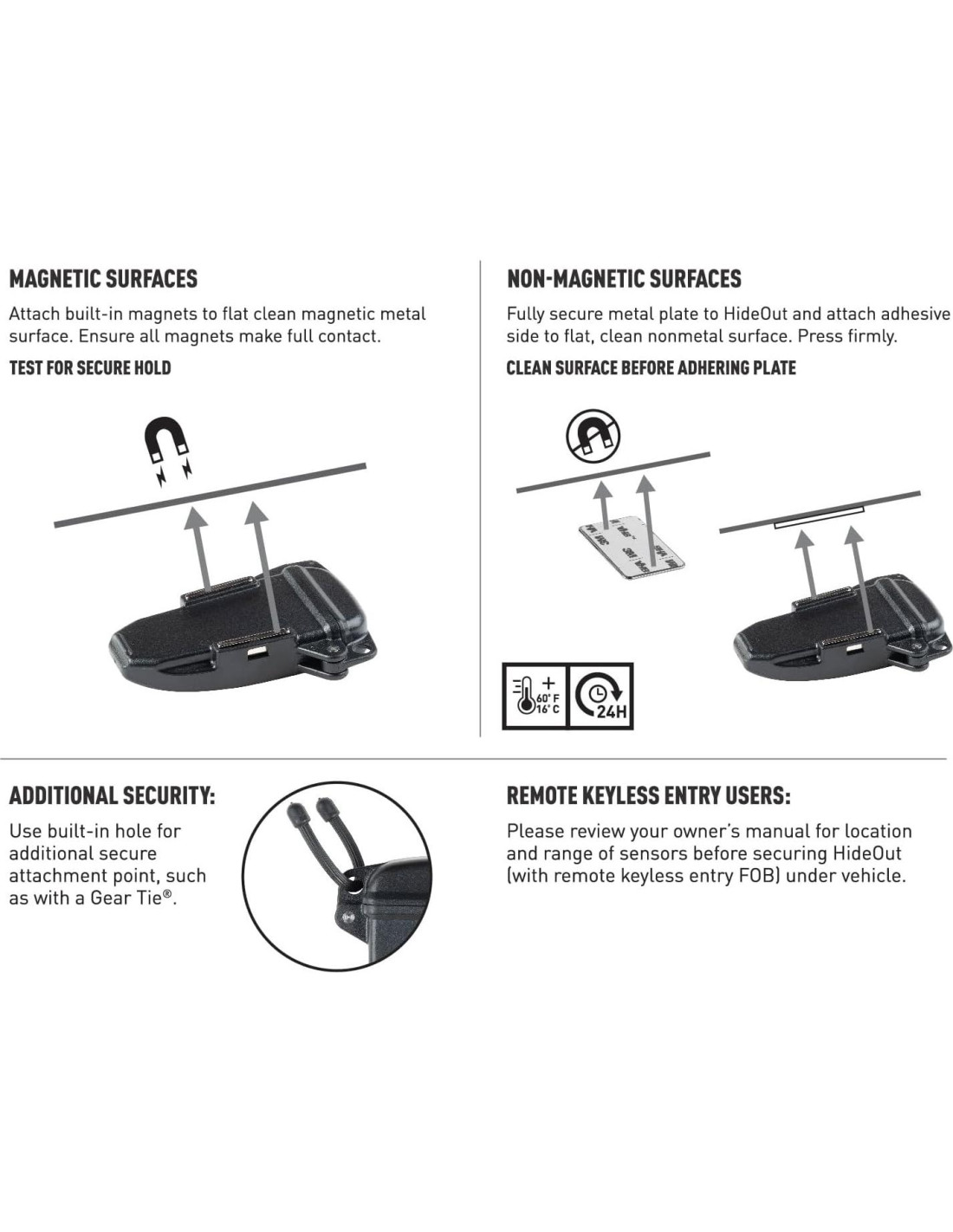 - Caja Magnética Segura para Llaves: Los potentes imanes de neodimio en esta caja de almacenamiento magnética aseguran el Hideout a cualquier superficie metálica en tu coche o casa