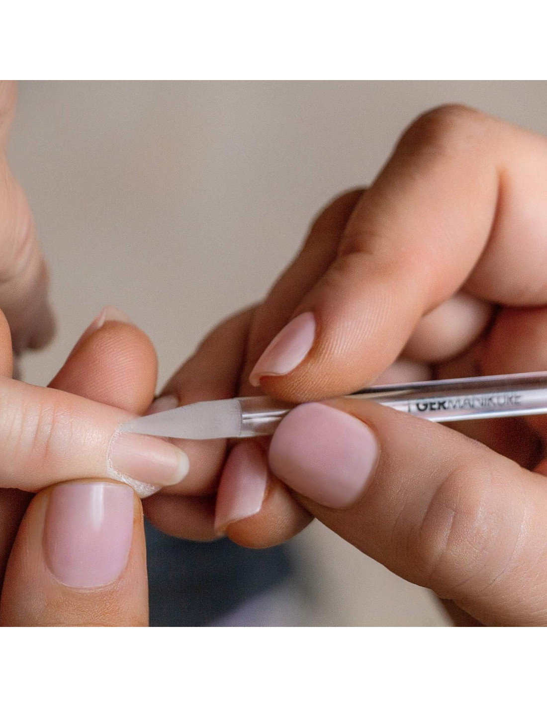 Nunca hemos visto nada como este palillo de manicura de vidrio cristalino antes, y una vez que lo probamos por nosotros mismos, ¡no podíamos esperar para mostrártelo! Este inusual palillo de manicura de vidrio checo de GERmanikure está diseñado con una punta cónica en un extremo y una punta inclinada en el otro que lo hace particularmente adecuado para limar uñas, cutículas y pequeñas durezas o trozos de piel endurecida cerca de la cama de la uña. Por loco que parezca, lo leíste bien; ¡puedes limar tus cutículas! El extremo cónico permite limar en áreas pequeñas, estrechas y con grietas, como los bordes o la parte inferior de la uña. La punta inclinada texturizada puede usarse para raspar suavemente y de manera segura el tejido de cutícula muerta o limar la piel endurecida sin riesgo de dañar la piel circundante o la cama de la uña. Este palillo está hecho a mano en la República Checa a partir de vidrio bohemio auténtico que está especialmente formulado y templado para resistir roturas. La textura está arenada directamente en la superficie de ambos extremos y es imposible de desgastar. Material: Vidrio cristalino Tamaño: 10.49 cm Diámetro: 6 mm