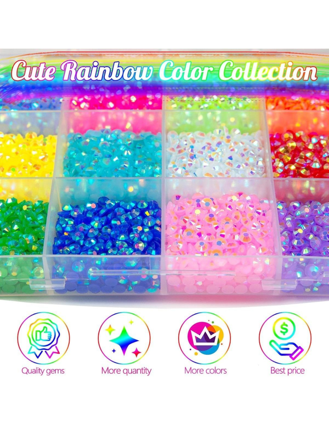 qiipii 12 Color Jelly Resin Rhinestones para Manualidades 3mm Piedras Planas Gemas Brillantes Arcoíris Colorido AB SS10 Piedras No Hotfix Diamantes Charms para Uñas Cara Ojos Maquillaje Cuerpo Manualidades DIY Vasos Decorativos Tazas Botellas Ropa Zapatos Decoración etc