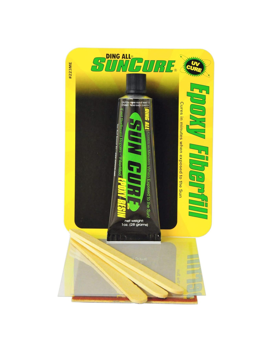 - Ding All Sun Cure 1oz Kit de Reparación de Epoxy Relleno de Fibra para reparaciones rápidas en tablas de surf de poliéster y epoxy.
