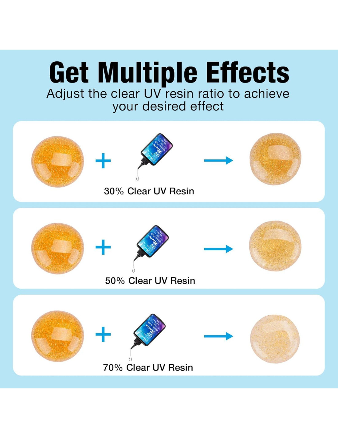 - [Efecto Brillante y Centelleante] El Kit de Resina UV Colorida JDiction agrega un cautivador efecto brillante y centelleante a tus artesanías. El brillo está especialmente formulado para crear un efecto centelleante consistente, las partículas están distribuidas uniformemente, mejorando el aspecto general de tus artesanías y haciendo que tus creaciones realmente brillen