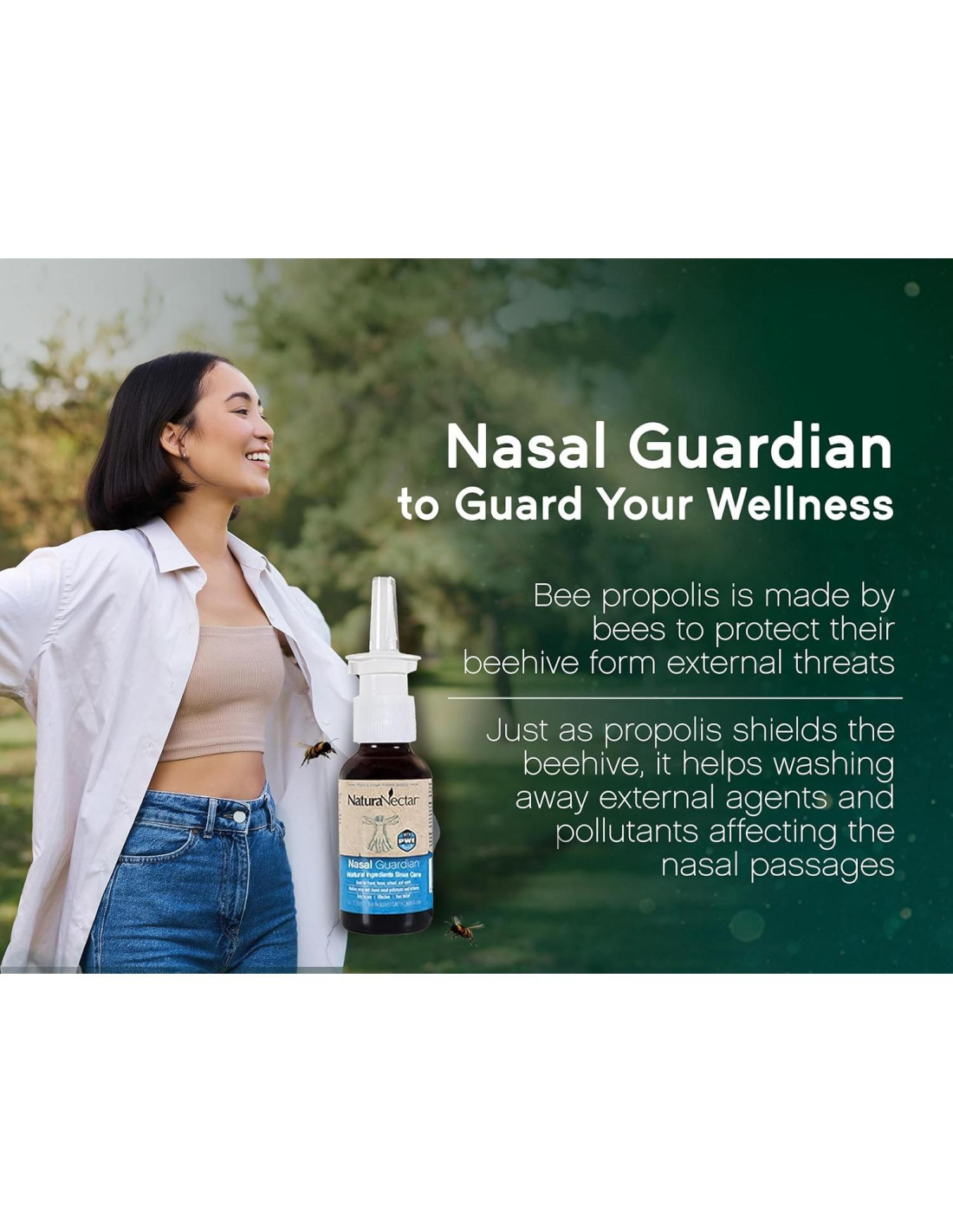 - SEGURO PARA TODA LA FAMILIA: Guardián Nasal es un spray nasal de propóleos de abeja suave, seguro para niños y adultos. Formulado con propóleos brasileños y una solución salina, proporciona alivio salino para los senos nasales y un enjuague salino efectivo sin dañar las membranas nasales. A diferencia de otros sprays salinos, no ofrece sensación de ardor. Este spray de propóleos se puede usar con otros productos de propóleos de NaturaNectar. Ingredientes: agua purificada, PWE-M, sal marina, ácido cítrico y sorbato de potasio.