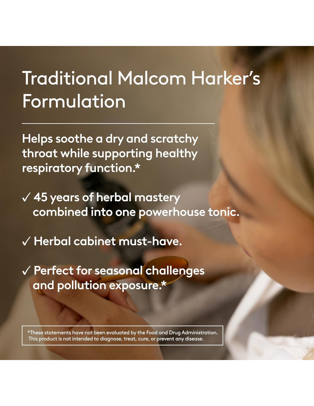 - Formulación Única - La formulación original y probada en el tiempo de Malcolm Harker combina botánicos tradicionalmente utilizados para apoyar el bienestar pulmonar y bronquial, incluyendo elecampane, jengibre, horehound blanco, pimienta de cayena y regaliz.