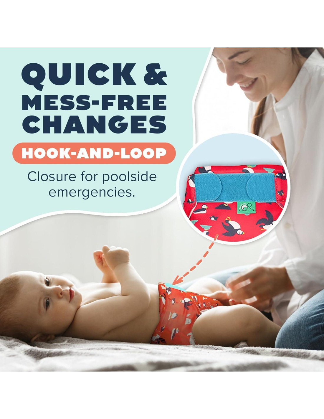- Cambios Fáciles: El conveniente cierre de velcro de gancho y bucle asegura que los cambios de pañal sean pan comido - ¡no es necesario bajar un pañal de natación sucio sobre las piernas de tu bebé!