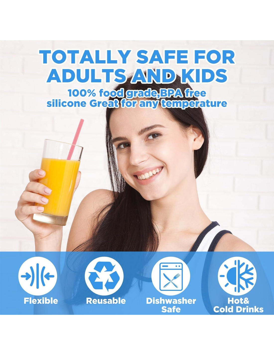 - Material Seguro y Confiable: las pajitas de silicona reutilizables están hechas de material de silicona seguro, confiable y seguro de usar, los extremos de la pajita tienen un diseño redondeado, y con bordes suaves, por lo que no rasparán la boca, debido al material, la pajita puede ser reutilizada, adecuada para niños, adolescentes, adultos y ancianos.